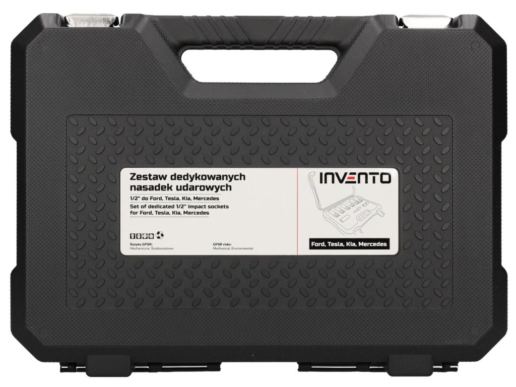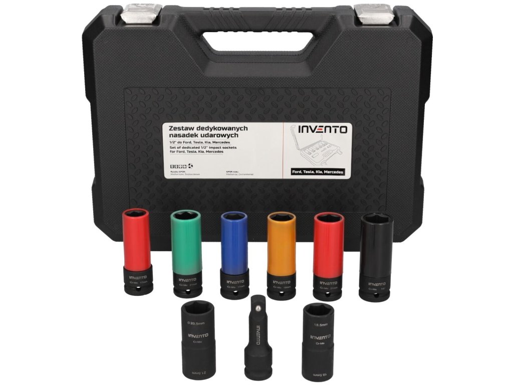 INVENTO – Sada rázových nástrčných hlavic 1/2" pro vozidla značek Ford, Tesla, Kia, Hyundai, Mercedes