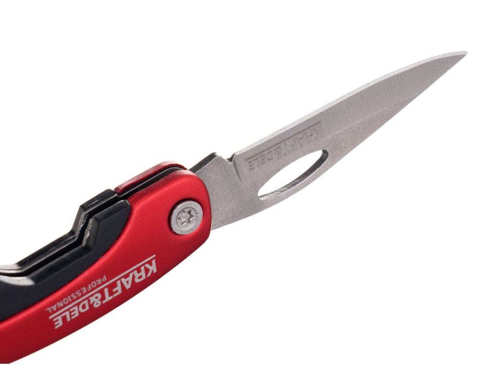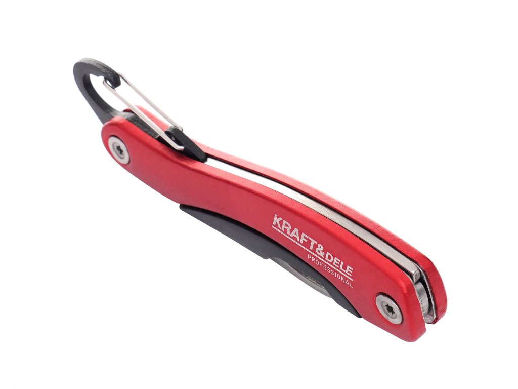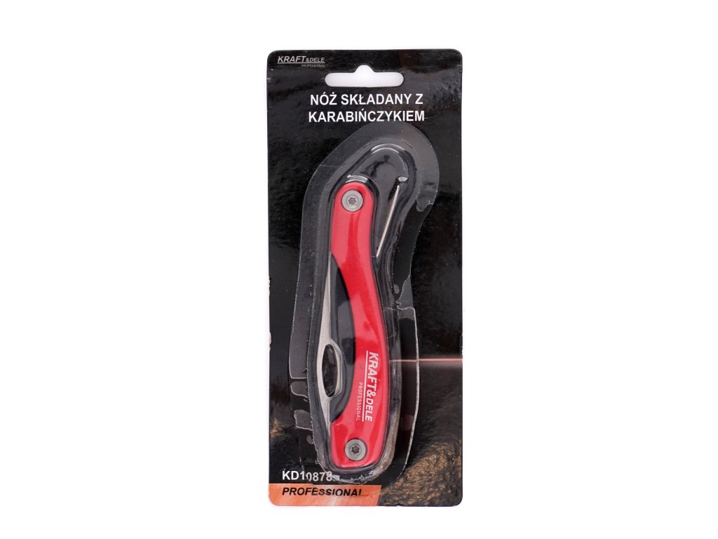Profesionální skládací nůž s karabinou od renomované značky nářadí Kraft&Dele, model KD10878, je vyroben z vysoce kvalitní nerezové oceli.
