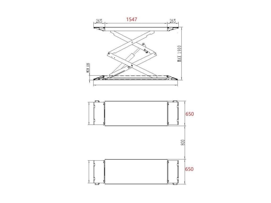 Zvedák umožňuje zdvih do výšky 1 900 mm a díky nízkému nájezdu pouhých 105 mm ve složeném stavu je vhodný i pro vozidla s nižším podvozkem.
