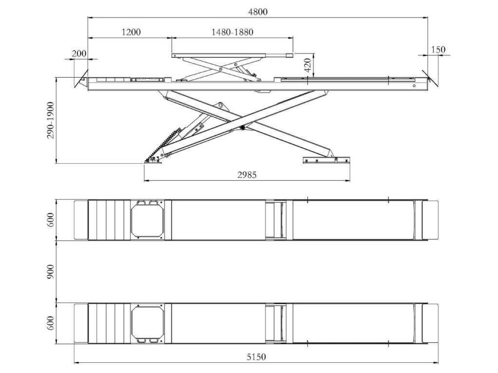 - Délka plošin podprahového zvedáku: 1 480 – 1 880 mm