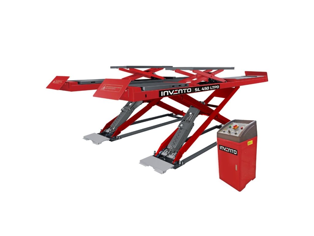 INVENTO SL 450 LTPD je profesionální nůžkový zvedák pro měření geometrie kol, vybavený integrovaným 8směrným šejkrem a zabudovaným podprahovým zvedákem o nosnosti 3,5 t. S délkou plošin 4,8 metru je ideální pro práci s osobními vozy, SUV a dodávkami. Zvedák lze instalovat na podlahu nebo zapustit do podlahy.