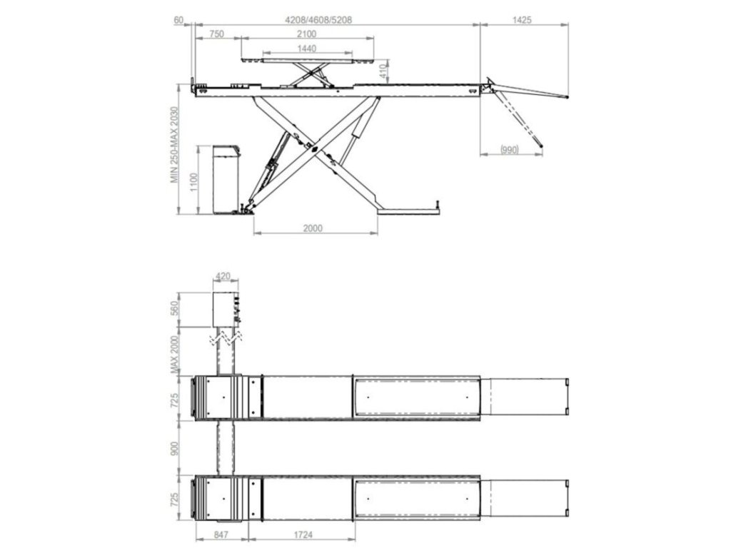 - Délka plošiny podprahového zvedáku: 1 440–2 100 mm