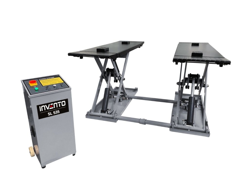 INVENTO SL S35 je podlahový nůžkový zvedák určený pro podprahové zvedání vozidel o hmotnosti až 3,5 t do výšky 1 000 mm. Zvedák je vhodný zejména pro pneuservisy a autoservisy, kde usnadňuje výměnu brzdových kotoučů, destiček či jinou práci v oblasti podvozku.