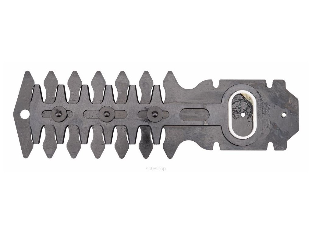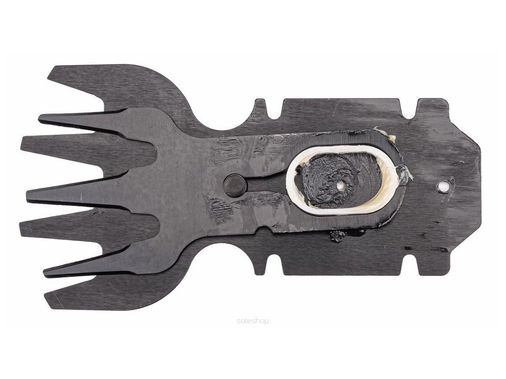 Součástí balení je čepel pro stříhání trávy o šířce 83 mm a čepel pro stříhání keřů o délce 120 mm a s rozestupem zubů 6 mm. Výměna čepele probíhá pomocí systému bez použití nástrojů, což umožňuje rychlou změnu z nůžek na trávu na nůžky na keře. Použití dvou čepelí umožňuje přesné formování okrajů trávníku a malých keřů.