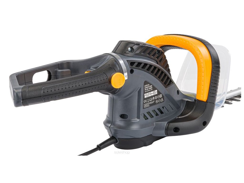 Elektrické nůžky na živý plot PM-NE-1800M, Powermat PM1288 s čepelí z vysoce uhlíkové oceli umožňují rychlou a snadnou regulaci úhlu náklonu rukojeti v 5 stupních, což velmi usnadňuje stříhání keřů. Výkonný elektrický motor o síle 1800 W umožňuje stříhat silné větve s maximální šířkou střihu - cca 20 mm.