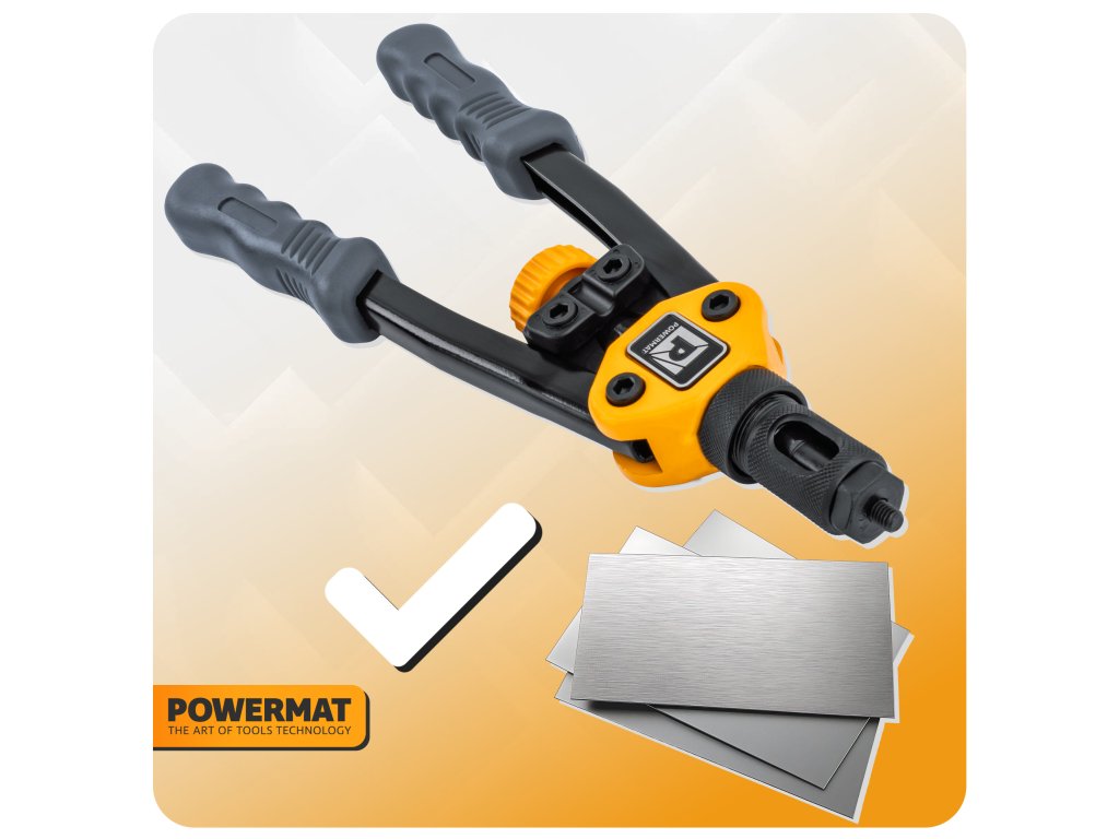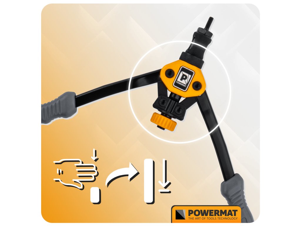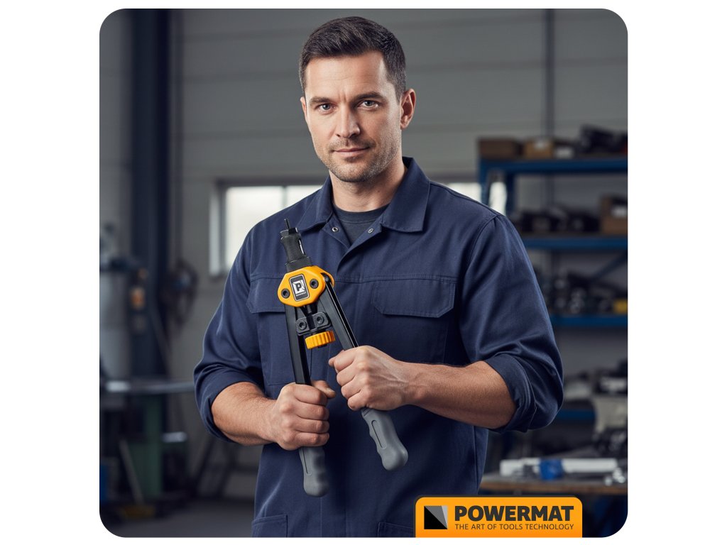 Ruční nýtovačka Powermat PM-NIR-300T je vybavena nůžkovým pákovým mechanismem, který výrazně zvyšuje sílu stisku při minimální námaze. Umožňuje přesné a opakovatelné osazování nýtovacích matic v tenkostěnných materiálech i při práci v omezeném prostoru.