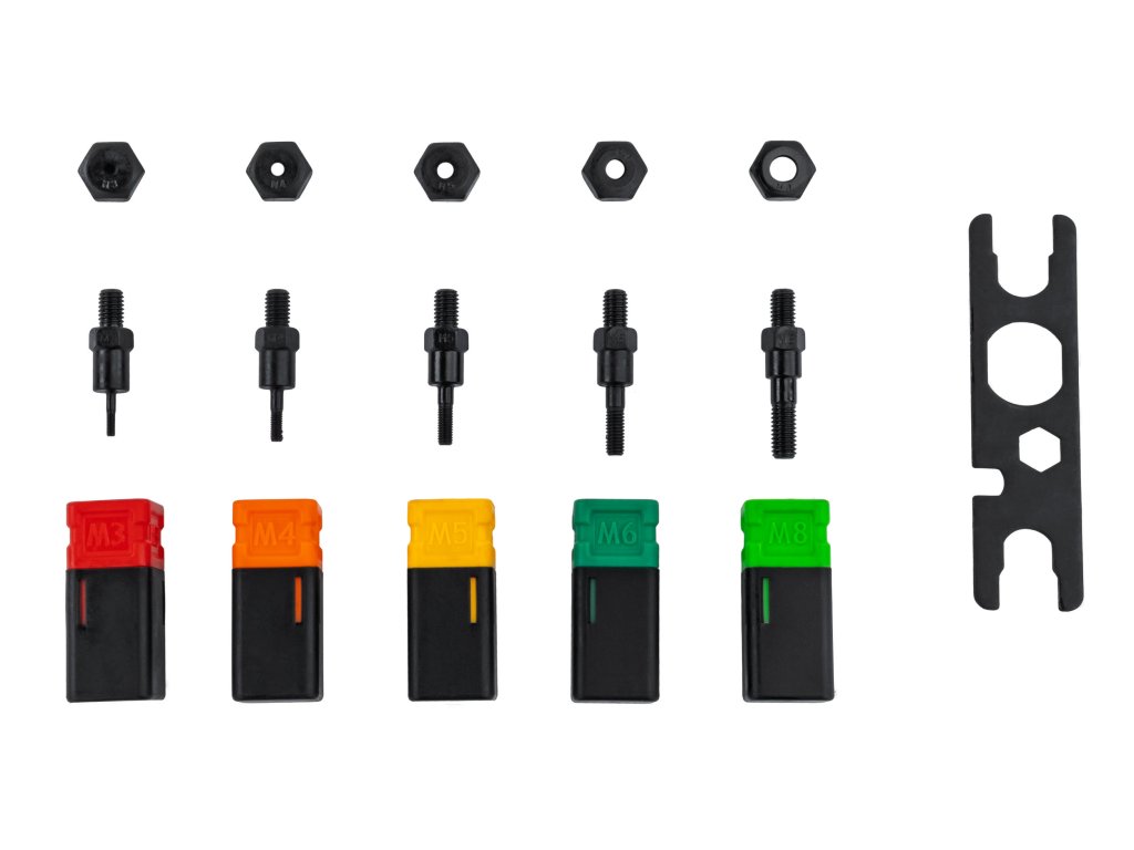 - Podpora nejpoužívanějších velikostí nýtovacích matic M3–M8