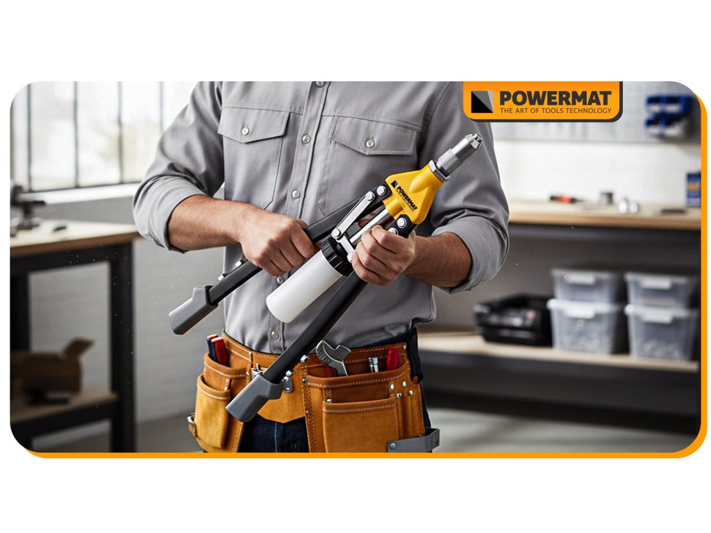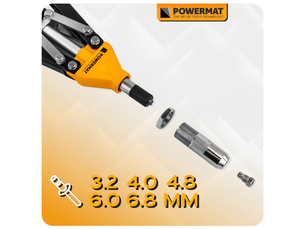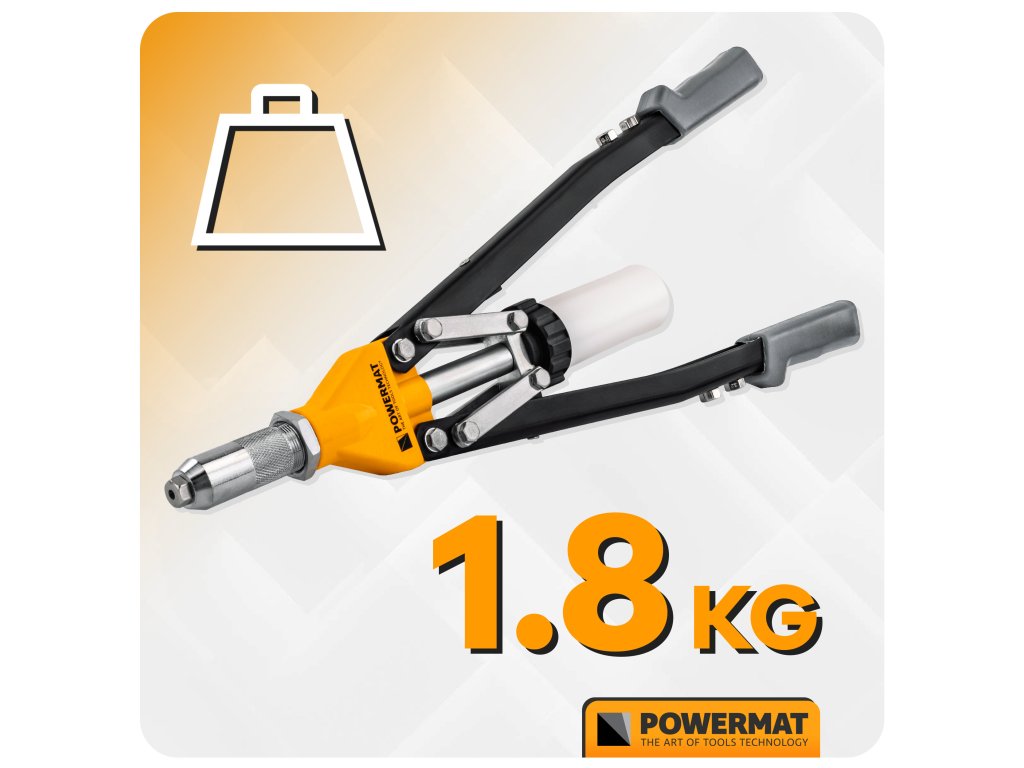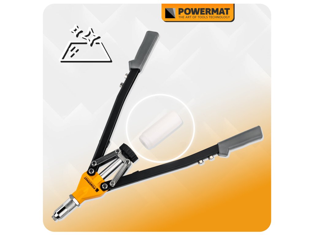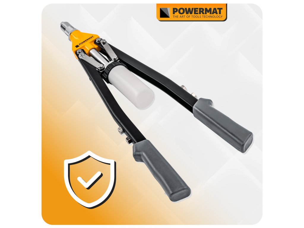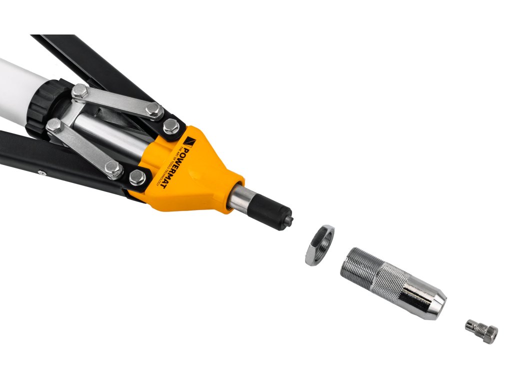 Ruční nýtovačka Powermat PM-NIR-525T je určena pro práci s trhacími nýty v širokém rozsahu průměrů. Díky pákovému nůžkovému mechanismu umožňuje efektivní přenos síly, takže nýtování je plynulé a vyžaduje menší námahu i při použití větších nýtů.