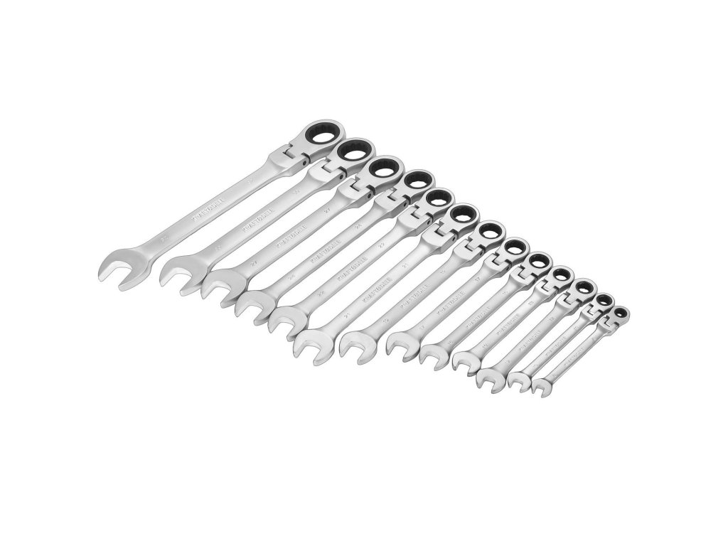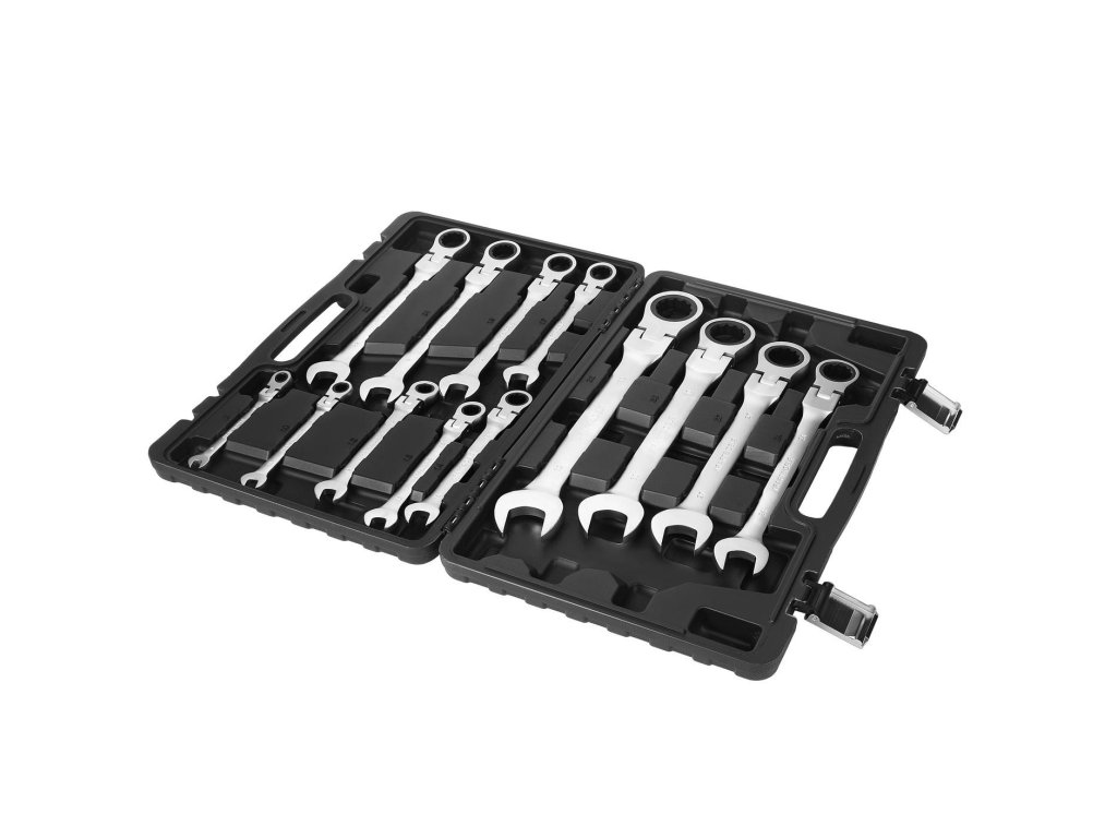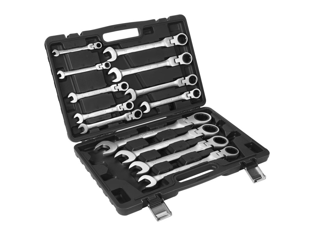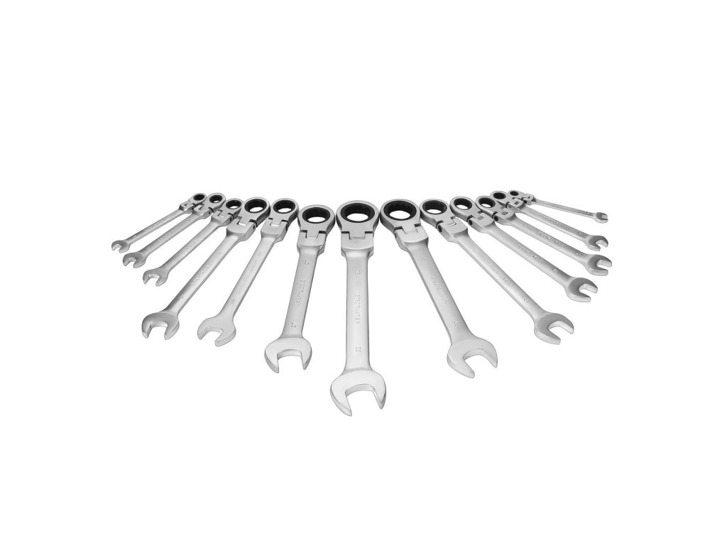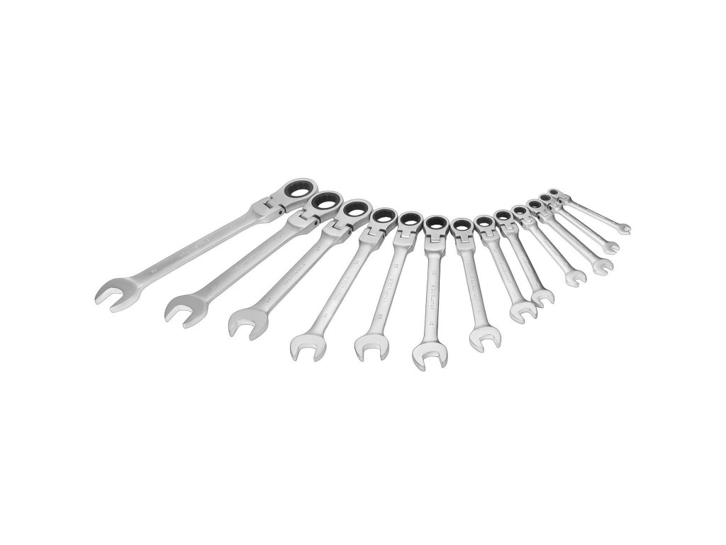 - 13 ks klíčů plochých–očkových s ráčnou a lámacím kloubem