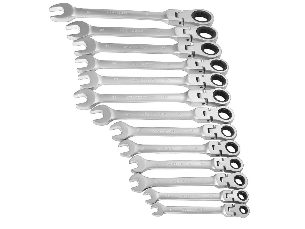 Ráčnové očkoploché klíče s kloubem, sada 13 ks, Kraft&Dele KD11305
