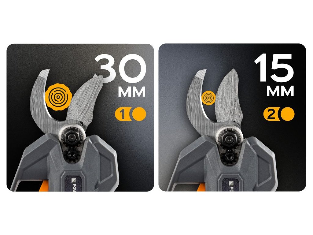 Díky bezkartáčovému motoru, dvěma akumulátorům a maximálnímu průměru střihu 30 mm jsou tyto nůžky vhodným nástrojem pro efektivní a pohodlnou práci při údržbě zahrady nebo sadu.