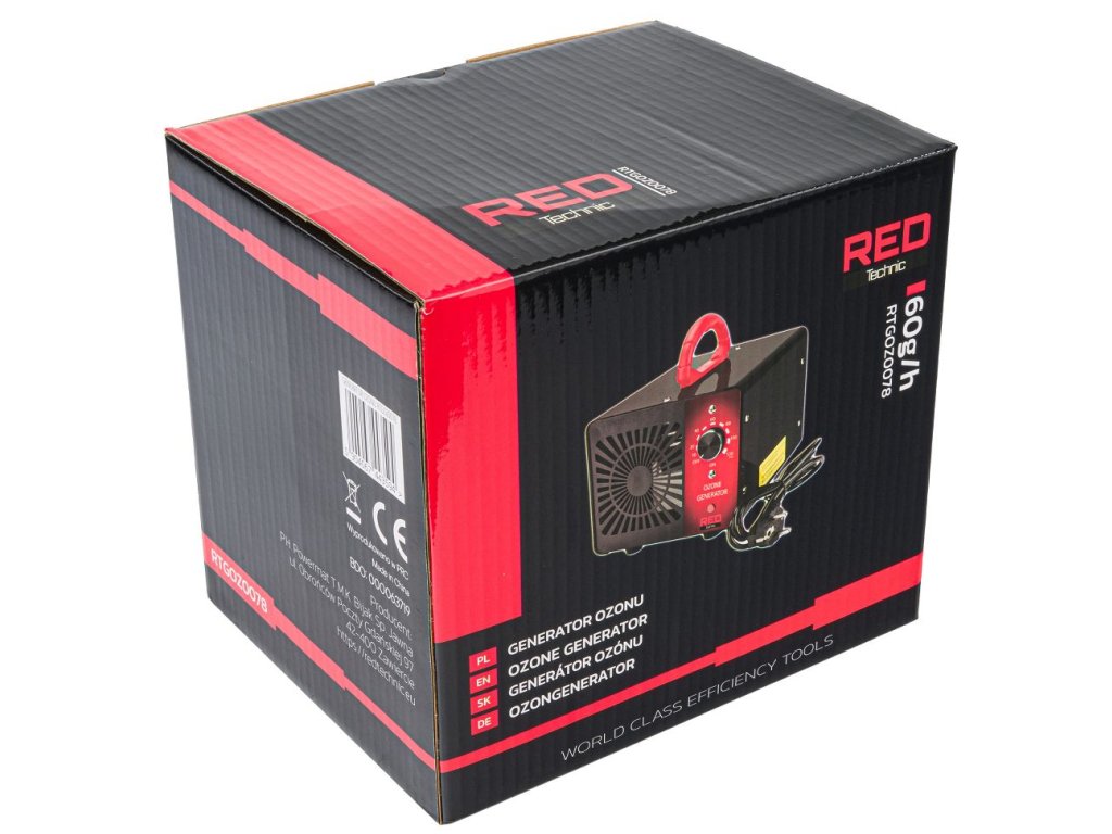Generátor ozónu RTGOZ0078 je výkonné zařízení určené k dezinfekci a odstraňování nepříjemných pachů z místností i vozidel. Díky vysokému výkonu 60 g/h účinně ničí bakterie, viry a alergeny, čímž zajišťuje čerstvé a čisté prostředí.
