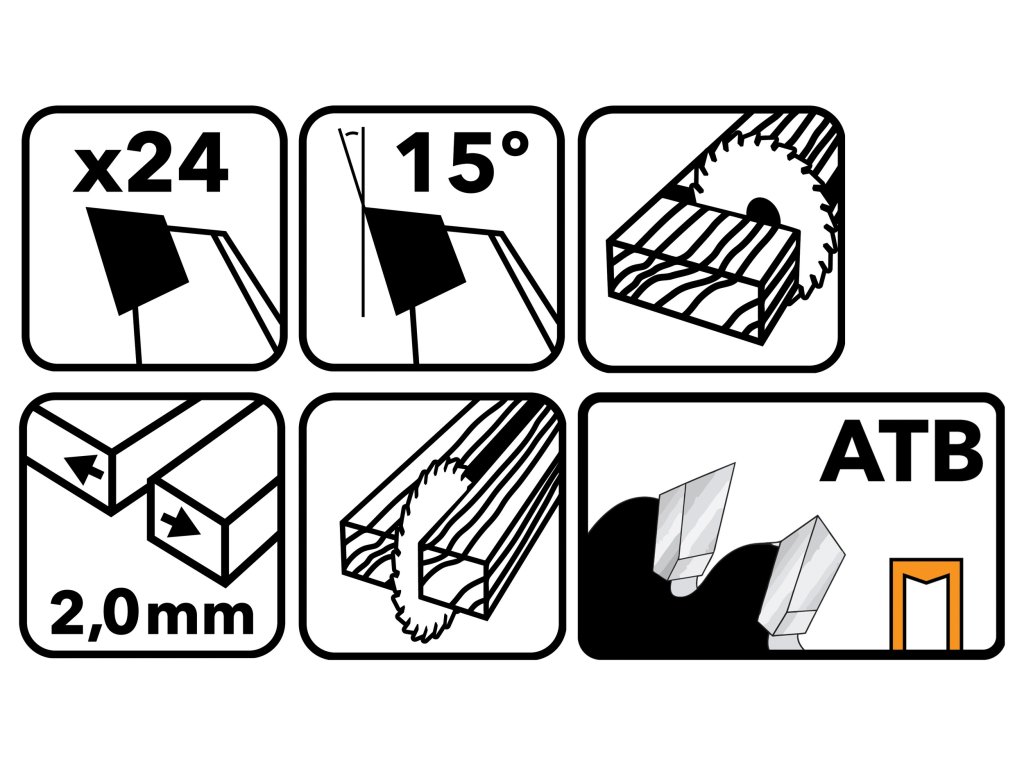 - geometrie ATB (Alternate Top Bevel) – optimální kvalita řezu při příčném i podélném dělení