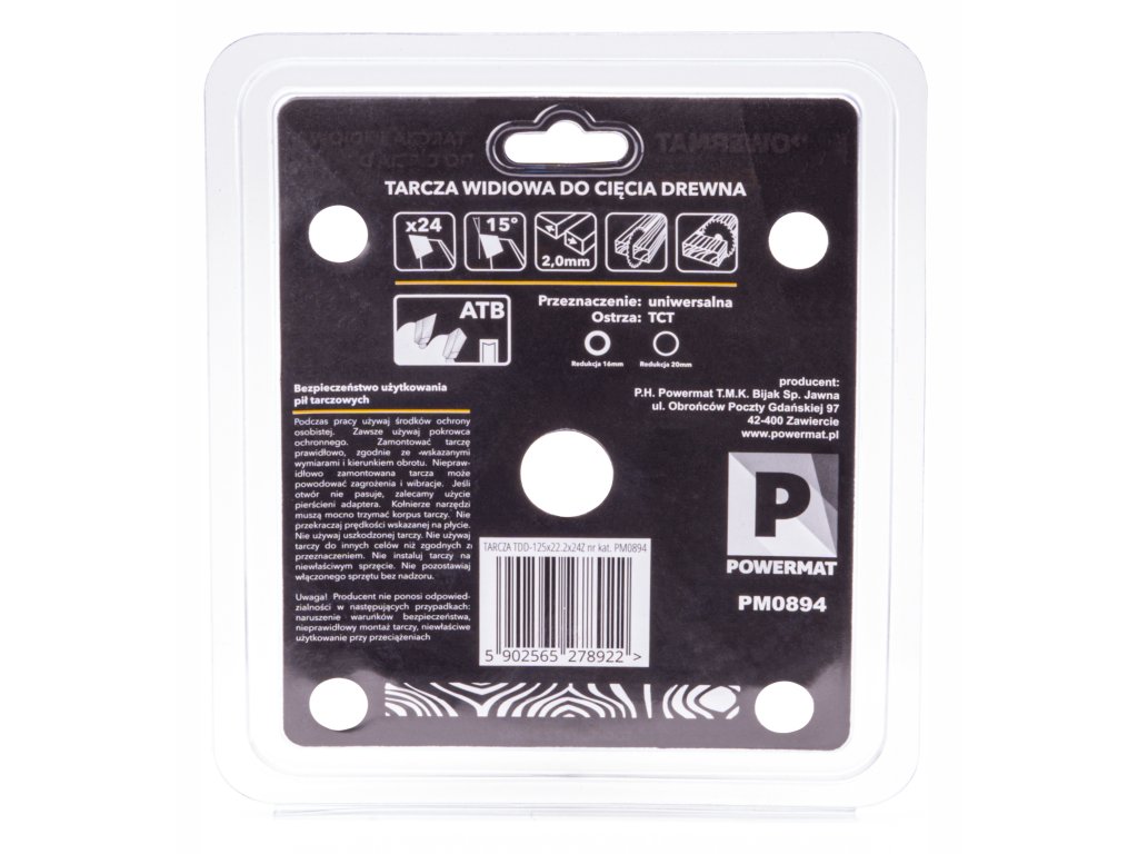 Vidiový pilový kotouč Powermat TDD-125x22.2x24Z je určený pro rychlé a čisté řezání dřeva a měkkých materiálů. Díky 24 ostrým zubům z tvrdokovu (TCT – Tungsten Carbide Tipped) zajišťuje přesný řez a dlouhou životnost. Hodí se pro podélné i příčné řezání a lze jej použít v univerzálních stacionárních i ručních pilách, včetně úhlových brusek.
