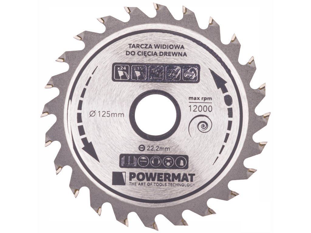 Pilový kotouč vidiový na dřevo 125 × 22,2 mm, 24 zubů Powermat TDD-125x22.2x24Z