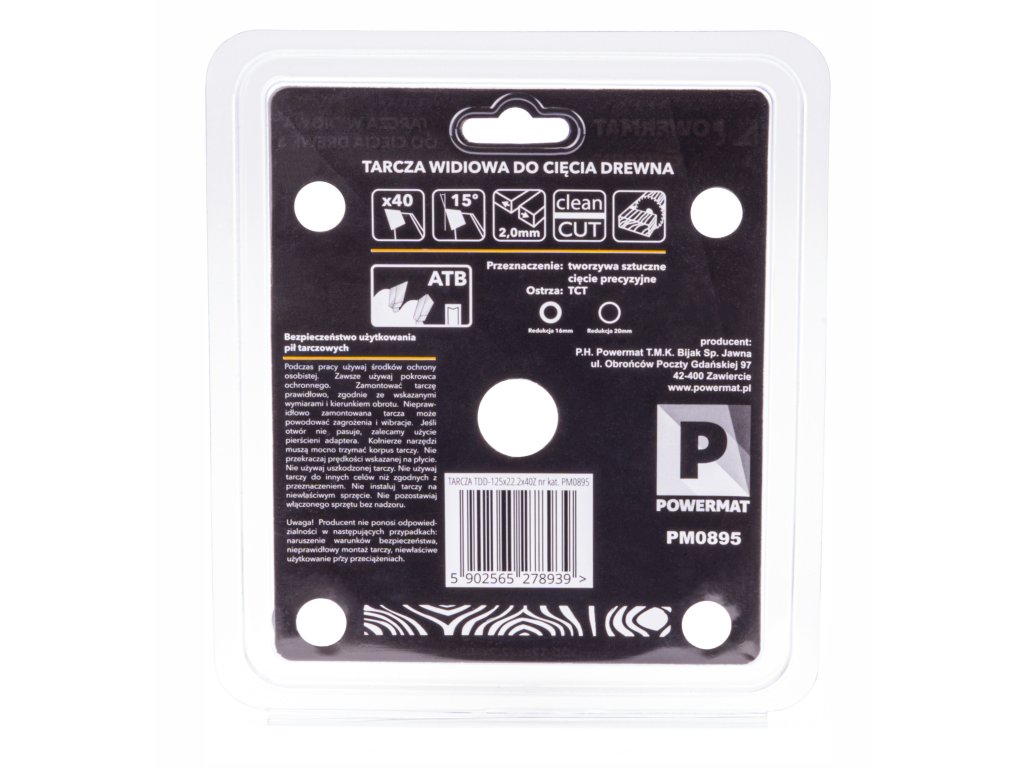 Vidiový pilový kotouč Powermat TDD-125x22.2x40Z je určený pro přesné a čisté řezání dřeva a měkkých materiálů. Díky 40 ostrým zubům z tvrdokovu (TCT – Tungsten Carbide Tipped) poskytuje jemnější a hladší řez než kotouče s menším počtem zubů. Je vhodný pro podélné i příčné řezání a lze jej použít v univerzálních stolních, pokosových i ručních pilách, včetně úhlových brusek.