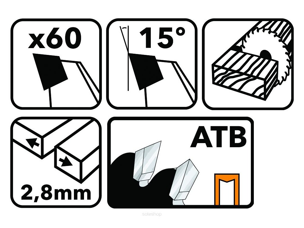 - Materiál zubů: TCT (TUNGSTEN CARBIDE TIPPED)