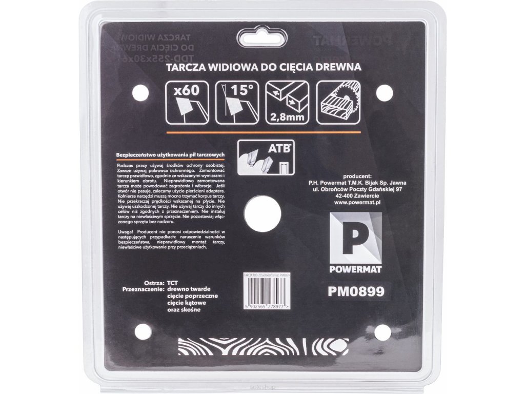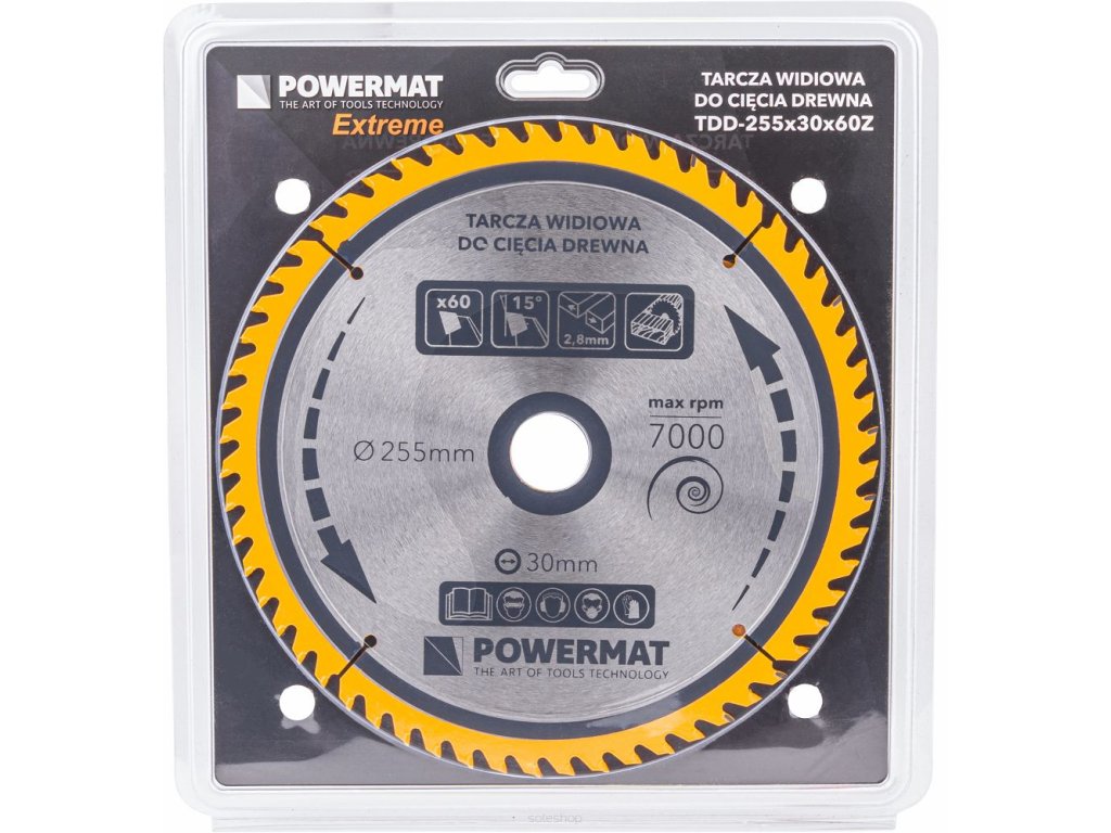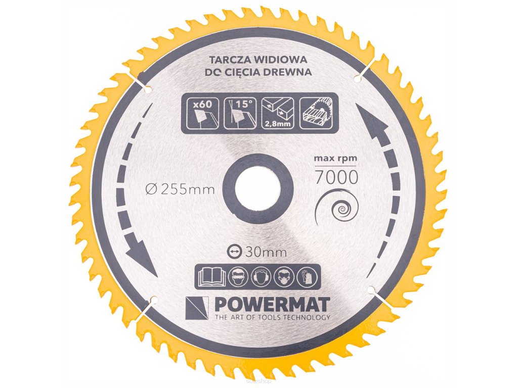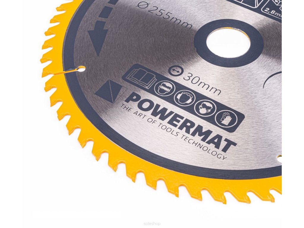 Vidiový kotouč na dřevo 255x30 60z TDD-255x30x60Z, Powermat PM0899 z kalené oceli obsahuje 60 řezných zubů.