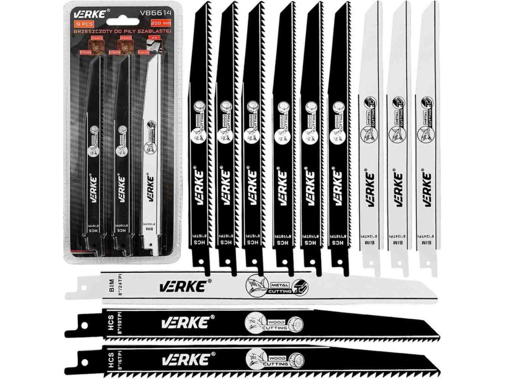 Profesionální sada pilových plátků do pily ocasky značky Verke, určená pro různé řezné práce. Souprava obsahuje 9 pilových plátků o délce 200 mm, které se osvědčí jak v domácím použití, tak v dílně.