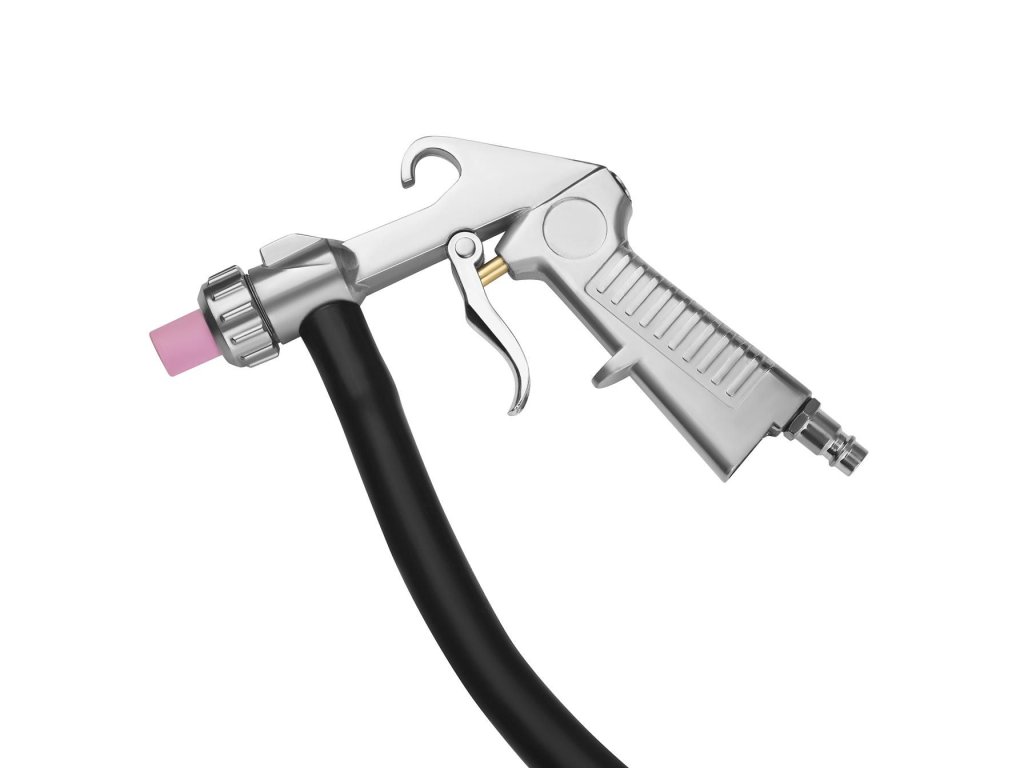 Pracovní tlak v rozmezí 80–120 PSI zajišťuje efektivní výsledky i při náročnějším znečištění, zatímco čtyři vyměnitelné trysky o průměrech 4, 5, 6 a 7 mm umožňují přizpůsobit proud abraziva konkrétnímu materiálu. Nízká hmotnost (pouze 2 kg) a hadice o délce 4,5 m poskytují maximální volnost pohybu při práci.