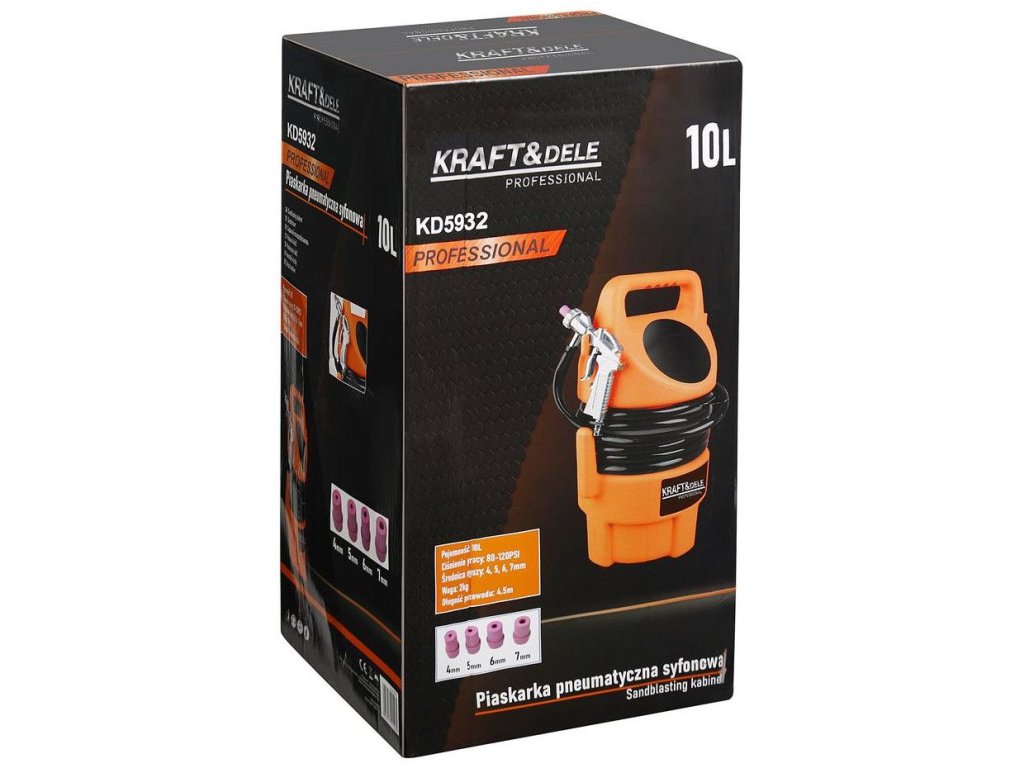Pneumatická sifonová pískovačka KD5932 je výkonné a praktické zařízení určené k čištění, matování a odstraňování rzi či starých nátěrů. Díky kompaktní konstrukci a nádrži o objemu 10 litrů je ideální jak pro použití v dílnách, tak i pro hobby práce.
