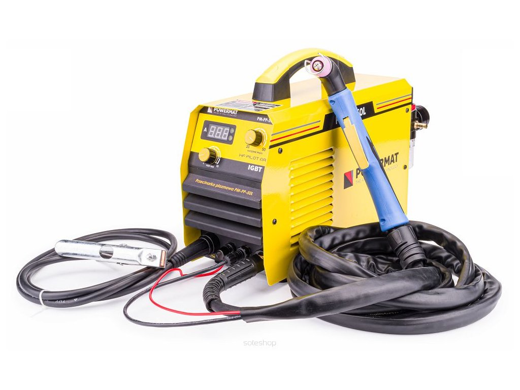 Plazmová řezačka 50A (IGBT) PM-PP-50L, Powermat PM0800 umožňuje řezání elektricky vodivých materiálů, jako je nelegovaná ocel, legovaná ocel, nerezová ocel, hliník, měď, nikl nebo litina.