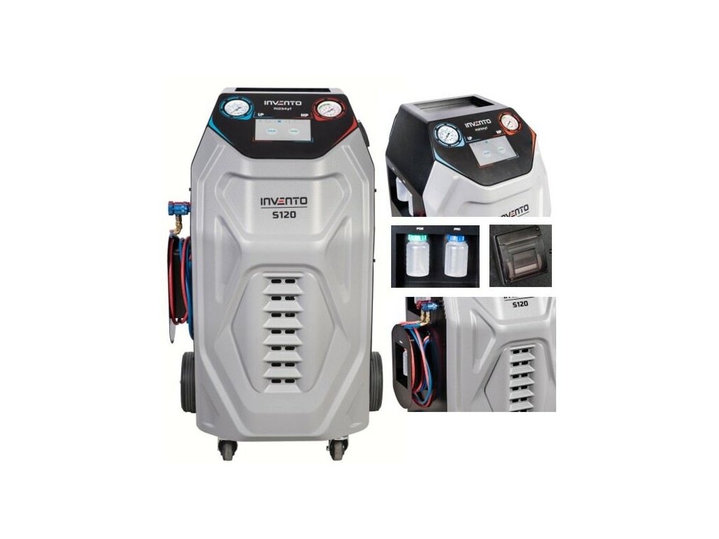 INVENTO S120 je profesionální plně automatické zařízení pro servis klimatizací, určené pro práci s chladivem R1234yf. Vhodné pro osobní a nákladní automobily, stavební i zemědělské stroje, nabízí kompletní obsluhu klimatizačních systémů včetně regenerace chladiva, separace použitého oleje, vakuace a automatického dávkování oleje či UV barviva.