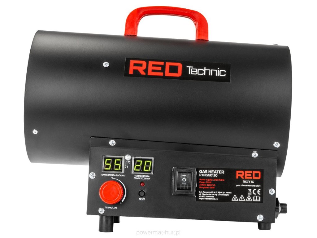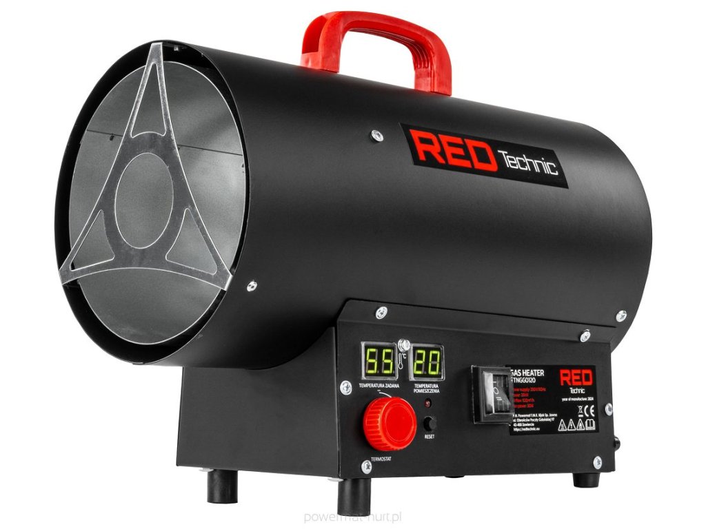 Plynové topení topidlo, plynový ohřívač 25KW, RED TECHNIC RTNGG0120