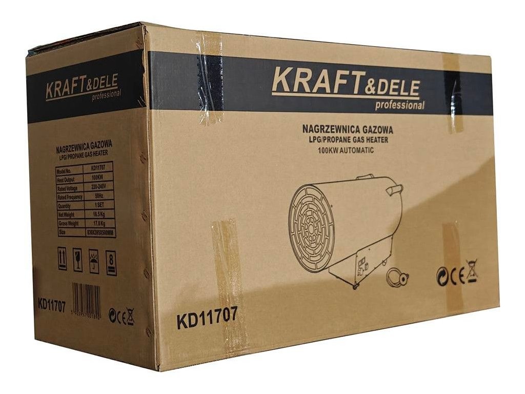 Plynové topidlo Kraft&Dele KD11707 o výkonu 100 kW je určeno pro vytápění pomocí propan-butanu (LPG). Je vybaveno vestavěným termostatem s regulací teploty a pracuje plně automaticky v závislosti na nastavených hodnotách.