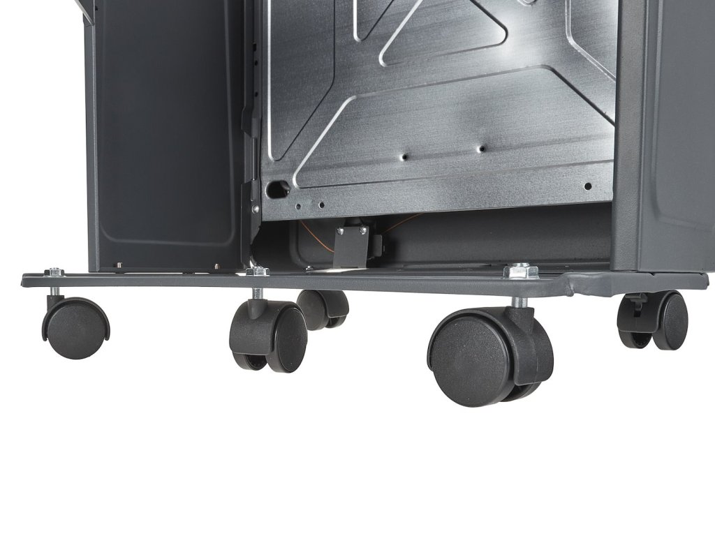 - Snadná manipulace – pět otočných koleček (jedno s brzdou) umožňuje stabilní postavení a jednoduchý přesun zařízení.