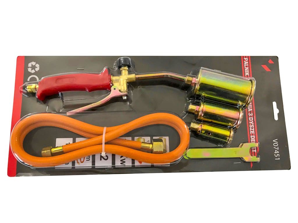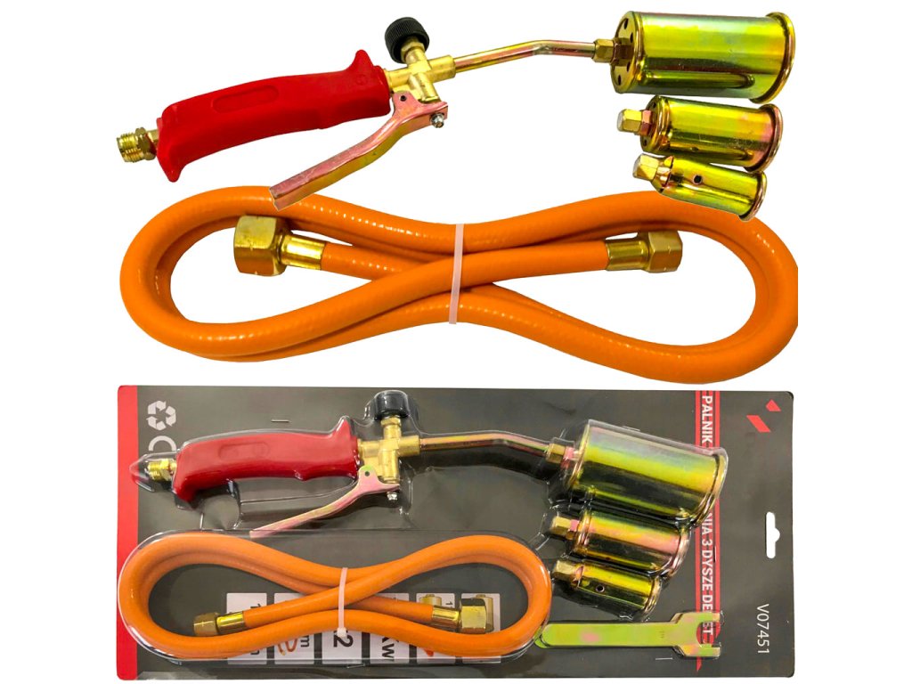 Plynový opalovací hořák 3 koncovky + hadice 1,5m, Verke V07451