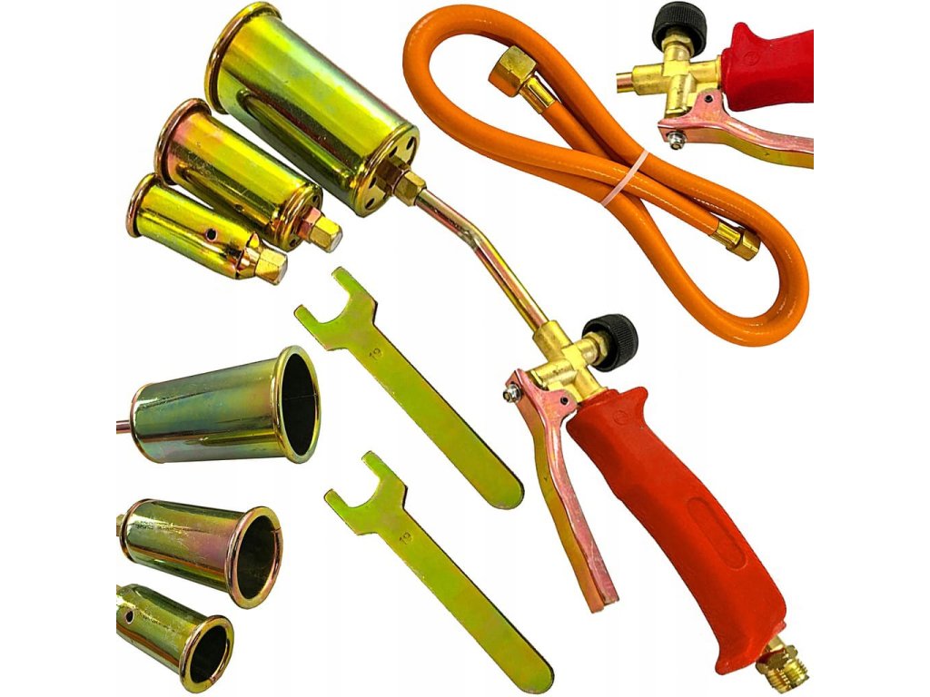 Základní sada krátkých opalovacích hořáků určených pro typické práce spojené s pokládkou termozhřívací lepenky. Součástí sady je rukojeť s pákou pro úsporný režim, hadice s připojením k lahvi a tři plamenné trysky pro intenzivní ohřev nebo opalování. Plynové hořáky jsou určeny k ohřívání, vysoušení a střešním pracím. Díky napájení z lahve se stlačeným butanem je možné pracovat i na místech bez zdrojů energie.