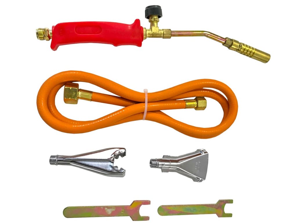Sada plynových hořáků určená pro instalační práce a také pro mnoho dalších použití v různých oborech. Součástí sady jsou tři trysky – bodová, s obepínajícím plamenem a plochá tryska. Plynové hořáky jsou určeny k ohřevu, vysoušení a klempířským pracím. Díky napájení z tlakové láhve s butanem je možné pracovat i na místech bez přístupu ke zdrojům energie.