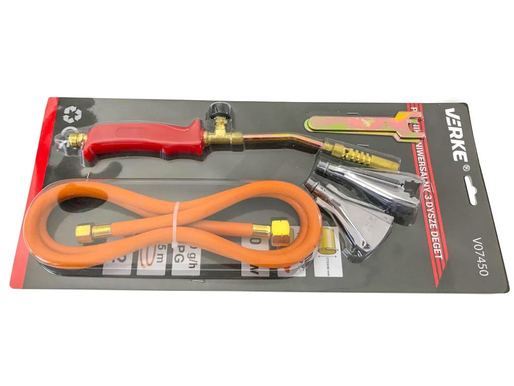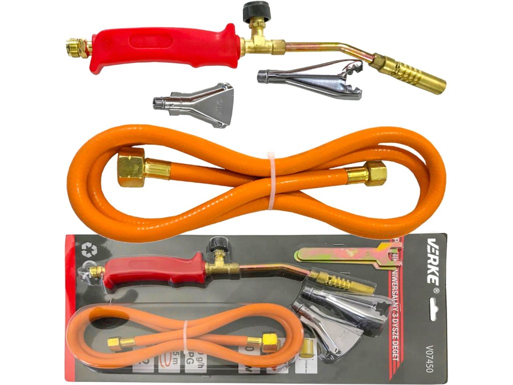 Plynový opalovací hořák 3 trysky + hadice 1,5m, Verke V07450
