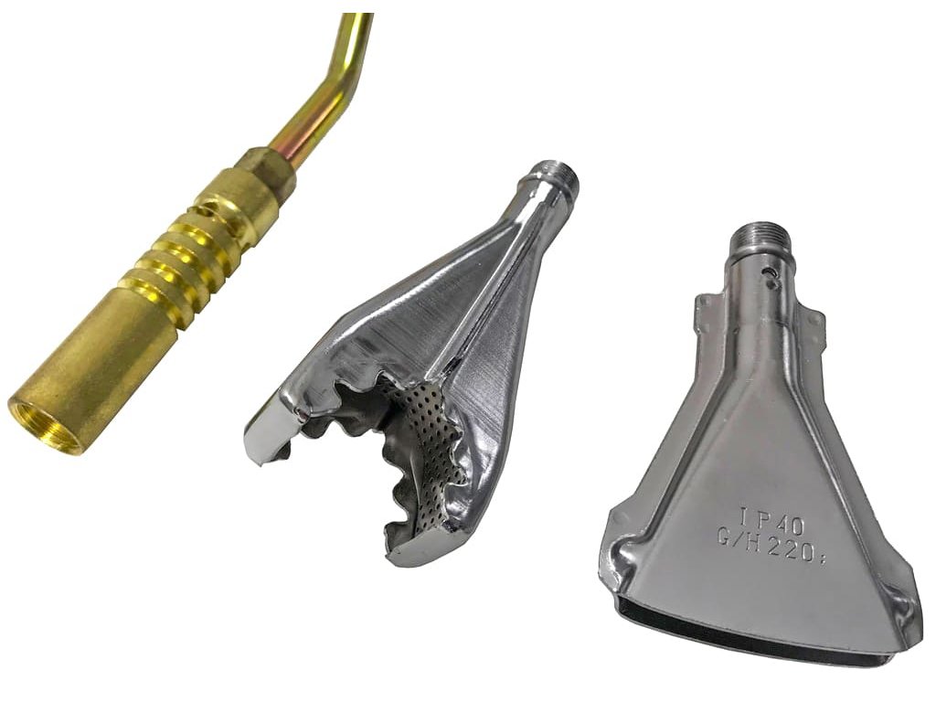 - Rozměr trysek: bodová tryska 17 mm, tryska s obepínajícím plamenem 22 mm, plochá tryska 40 mm