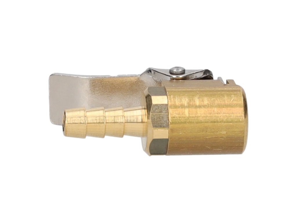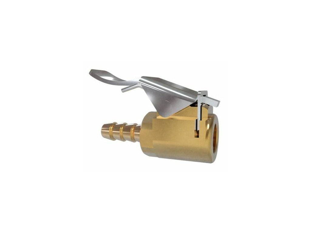 Mosazná koncovka na huštění kol od italské značky WONDER je vybavena nástrčnou objímkou pro připojení gumové hadice o vnitřním průměru 6 mm. Praktický aretační klips umožňuje huštění bez nutnosti neustálého přidržování koncovky na ventilku, což výrazně zvyšuje komfort obsluhy.