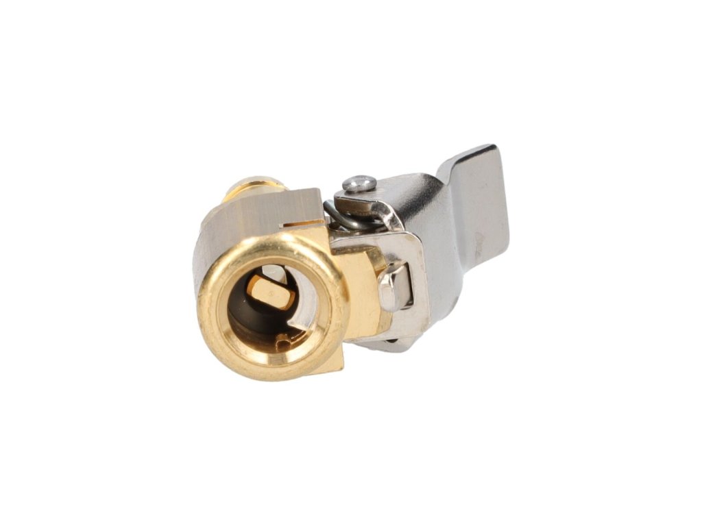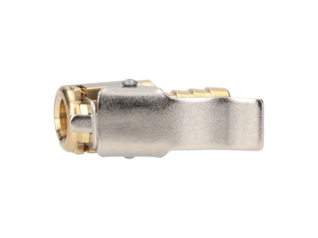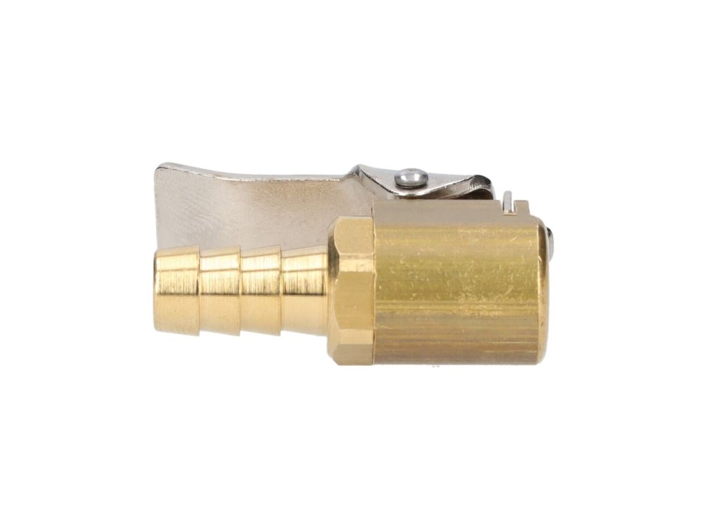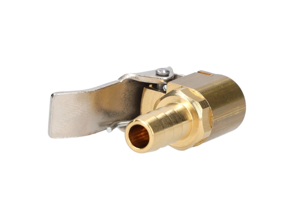 Mosazná koncovka na huštění kol od italské značky WONDER je vybavena nástrčnou objímkou pro připojení gumové hadice o vnitřním průměru 8 mm. Praktický aretační klips umožňuje huštění bez nutnosti neustálého přidržování koncovky na ventilku, což výrazně zvyšuje komfort obsluhy.