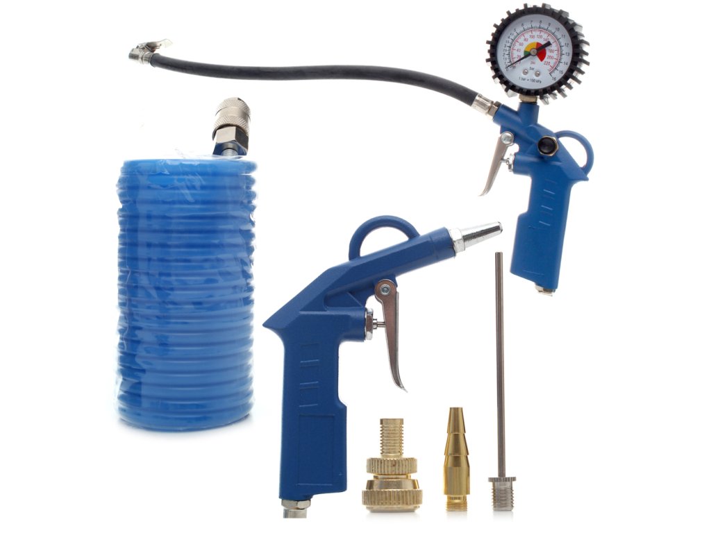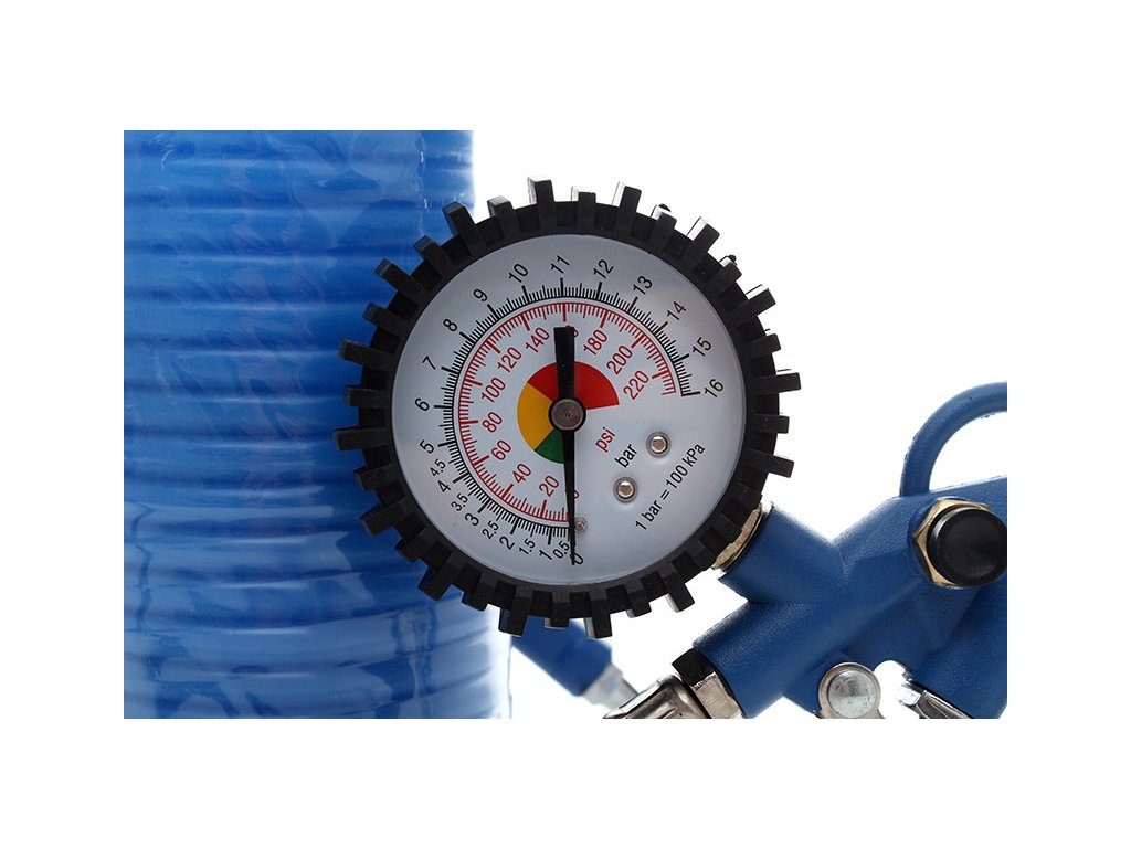 5m spirálová hadice pro připojení pneumatického nářadí, stříkacích pistolí, jiných pneumatických zařízení nebo pro rozšiřování pneumatických hadic.
