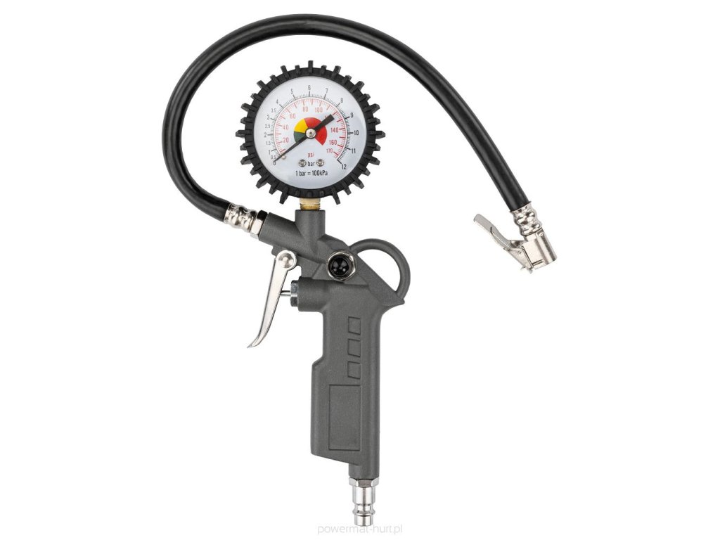 Pistole na pumpování s manometrem zajišťuje přesné pumpování a kontrolu tlaku pneumatik. Je vybavena gumovým krytem manometru a vypouštěcím ventilem vzduchu.