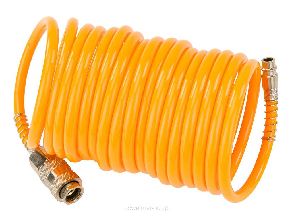 5m spirálová hadice je ideální pro připojení pneumatických nástrojů, stříkacích pistolí a prodlužování hadic, poskytující komfort při práci.