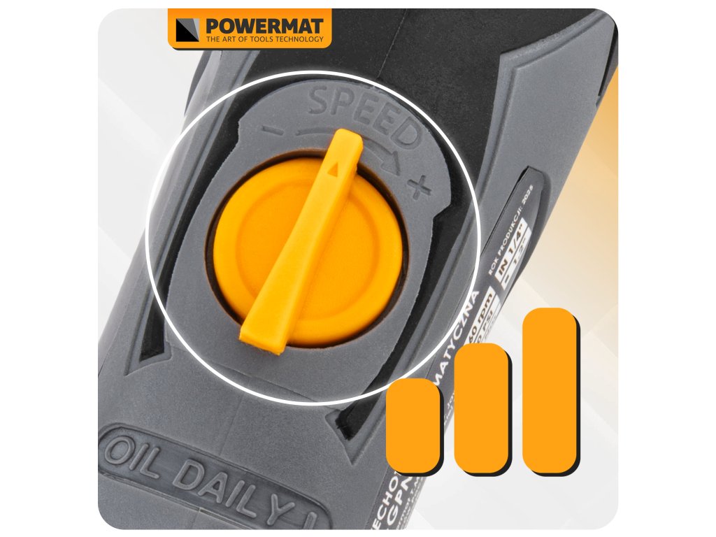 - Regulace pracovního tlaku umožňuje přesné přizpůsobení výkonu typu úkolu, což zvyšuje kontrolu a bezpečnost práce.