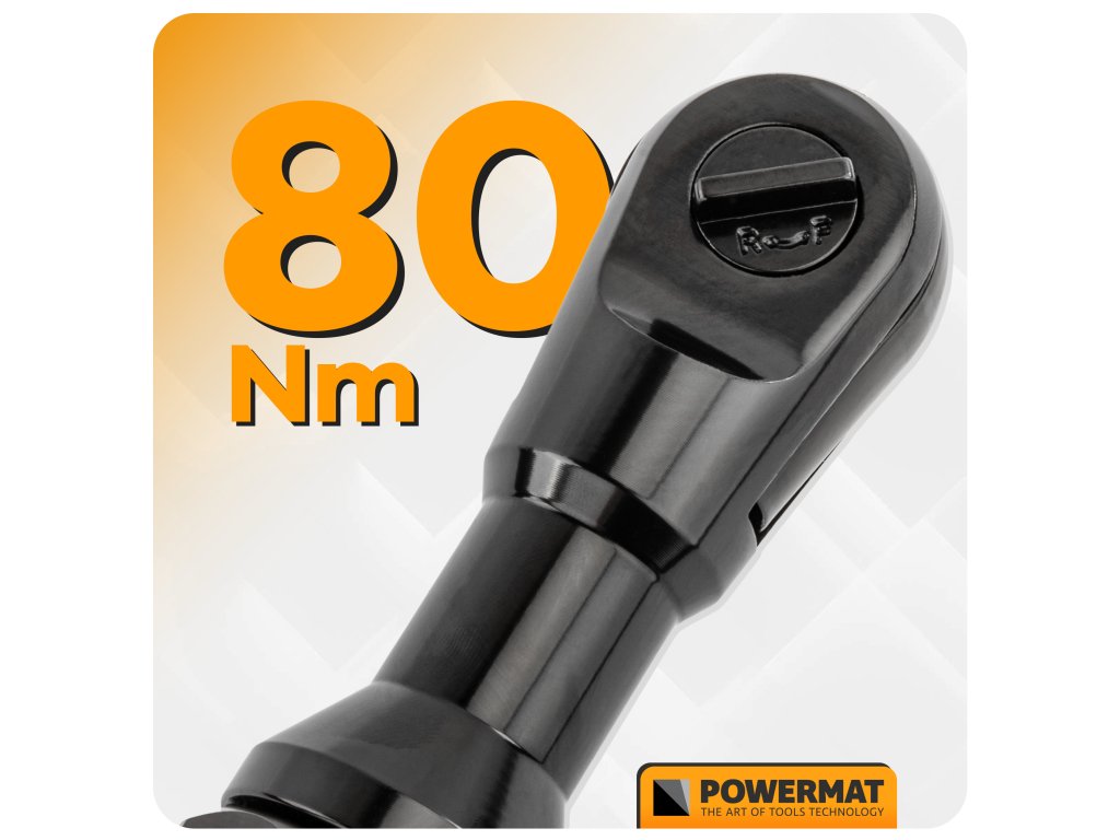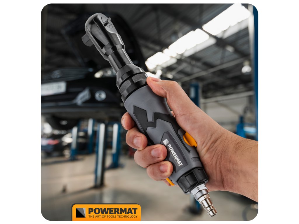- Pneumatická ráčna Powermat dosahuje krouticího momentu 80 Nm, což zajišťuje rychlé a efektivní povolování i utahování šroubů v náročných dílenských podmínkách.