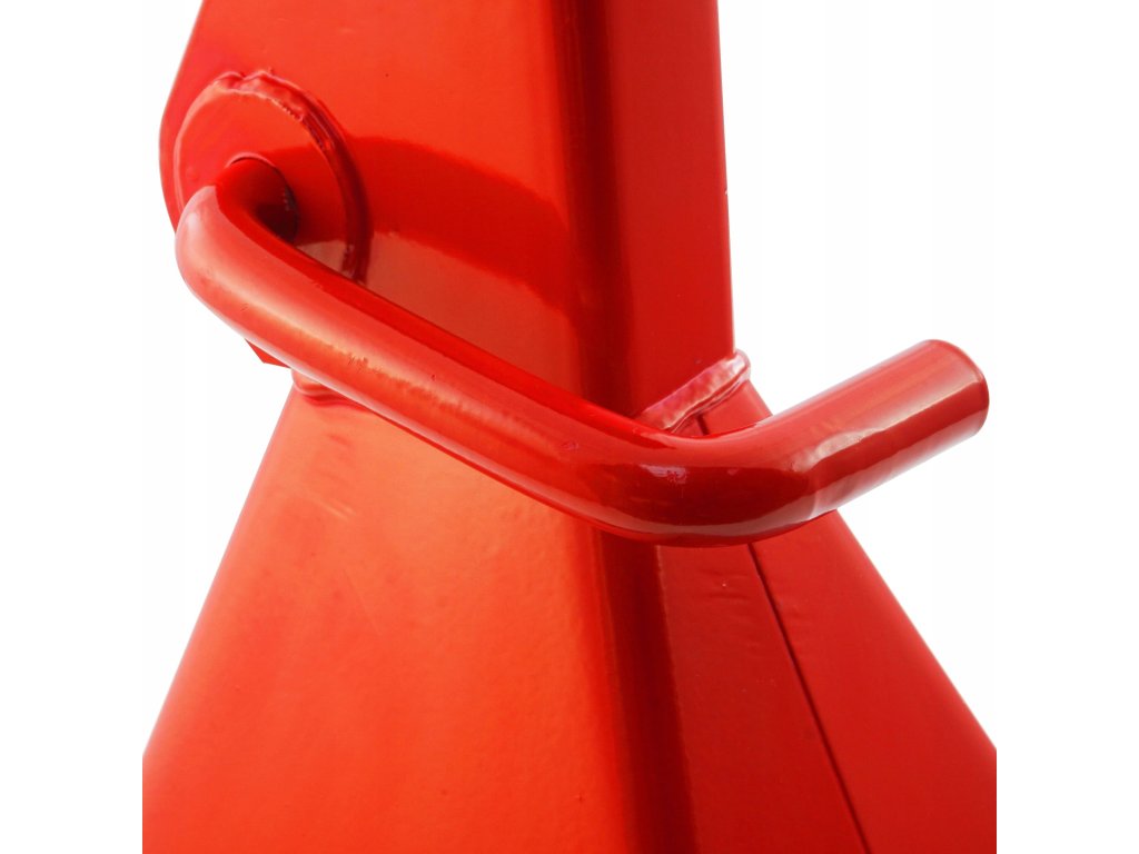 Sada dvou robustních podpěr pod auto, vyrobených z pevných ocelových profilů. Jsou vybaveny pohodlnou západkovou aretací pro snadné nastavení výšky. Nohy podpěr jsou zakončeny širokými patkami, které zabraňují zaboření do podkladu.