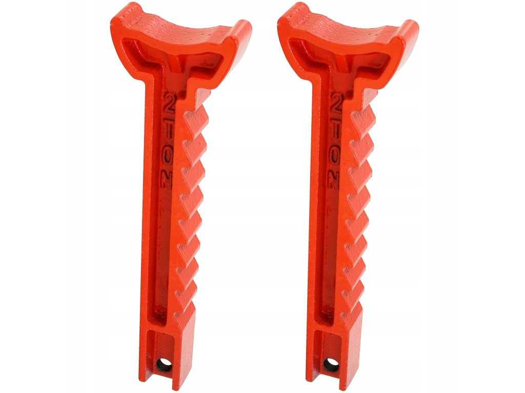 Podpěry pod automobil – sada 2 ks, vyrobené z pevných ocelových profilů. Mají praktickou a snadno ovladatelnou ráčnovou aretaci výšky.