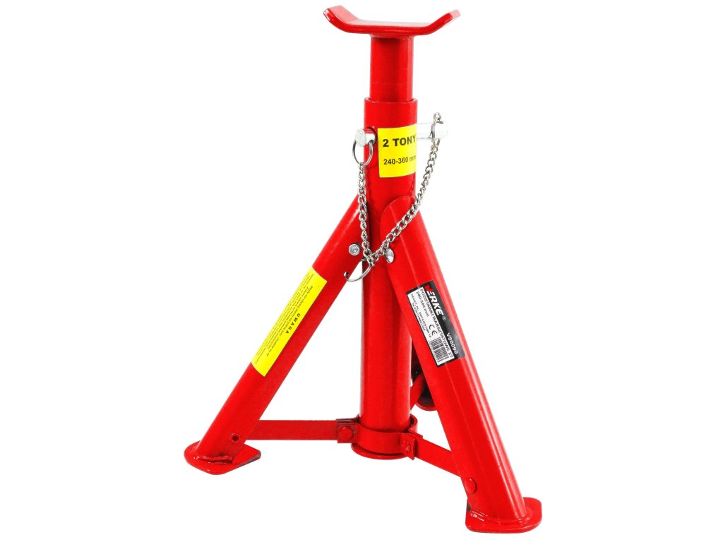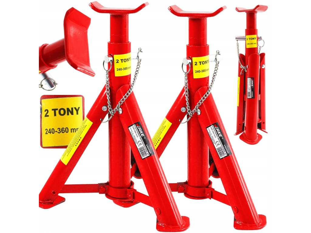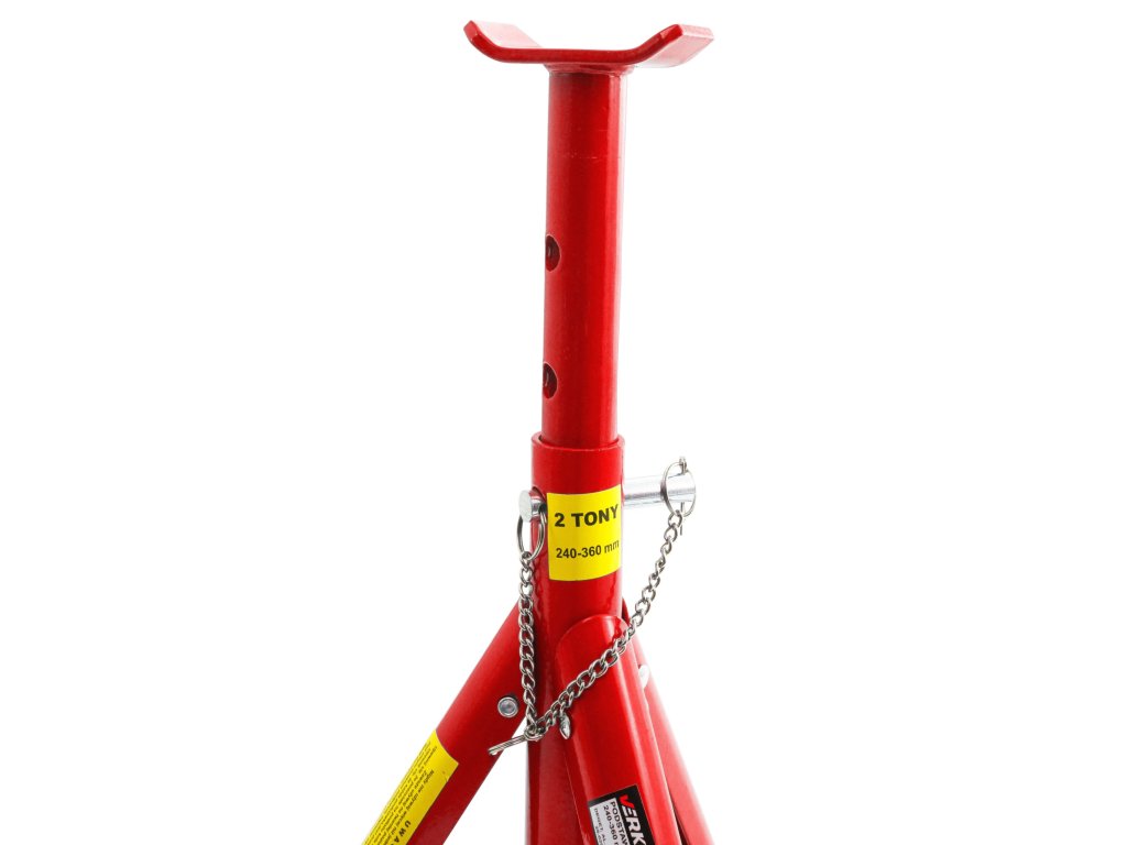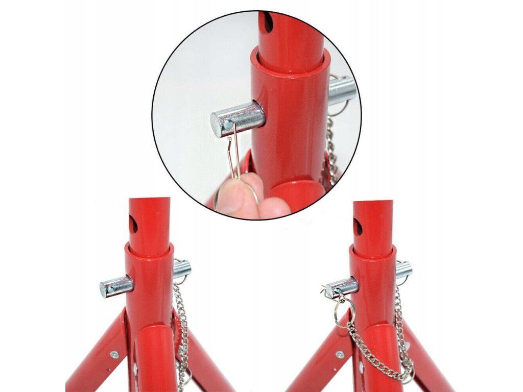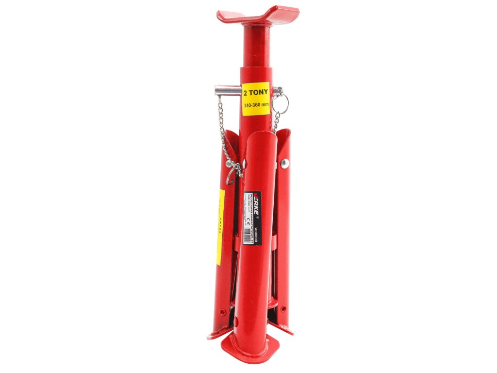 Podpěry pod auto mají tři sklopné nohy a tříúrovňovou regulaci výšky. Zajišťovací čep je trvale spojený se základnou. Výborné pro odlehčení zvedáku. Jsou základní výbavou každé dílny.