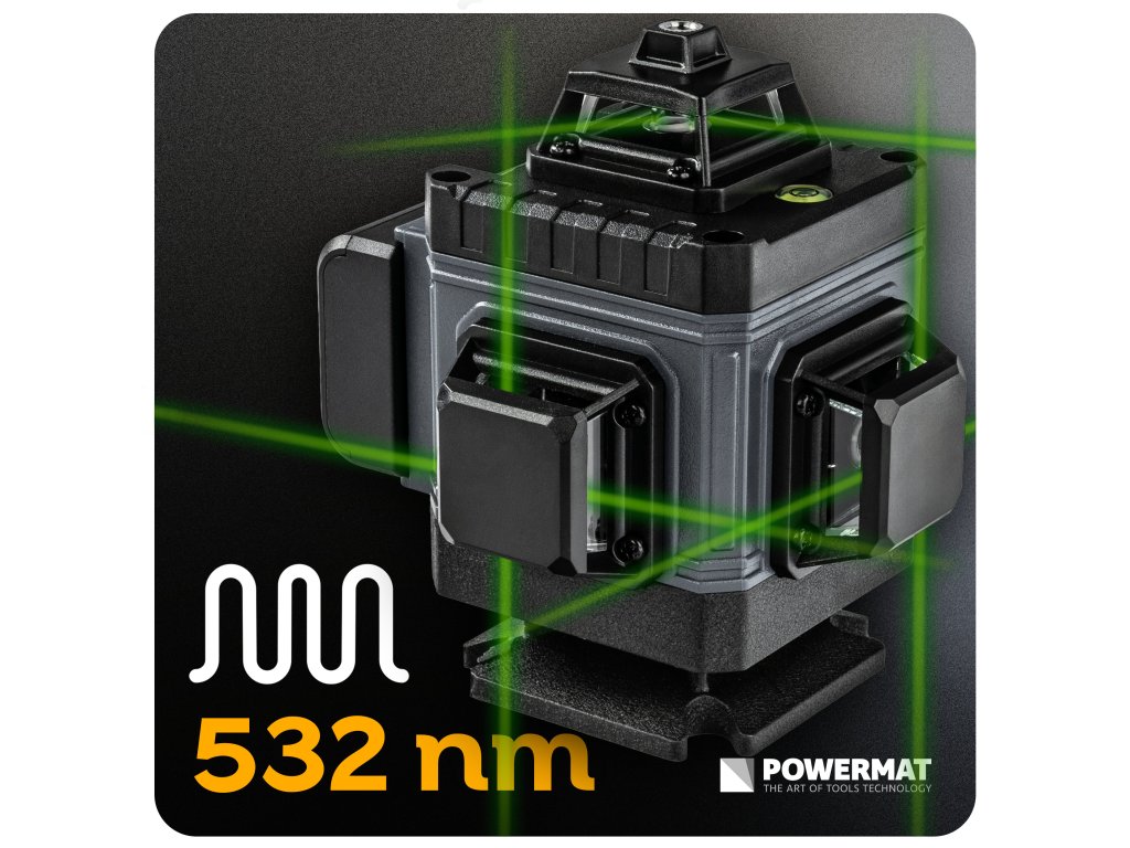 Křížový laser 4D 16 linií 360° zelený PM-PLK-4DM1, Powermat PM1492