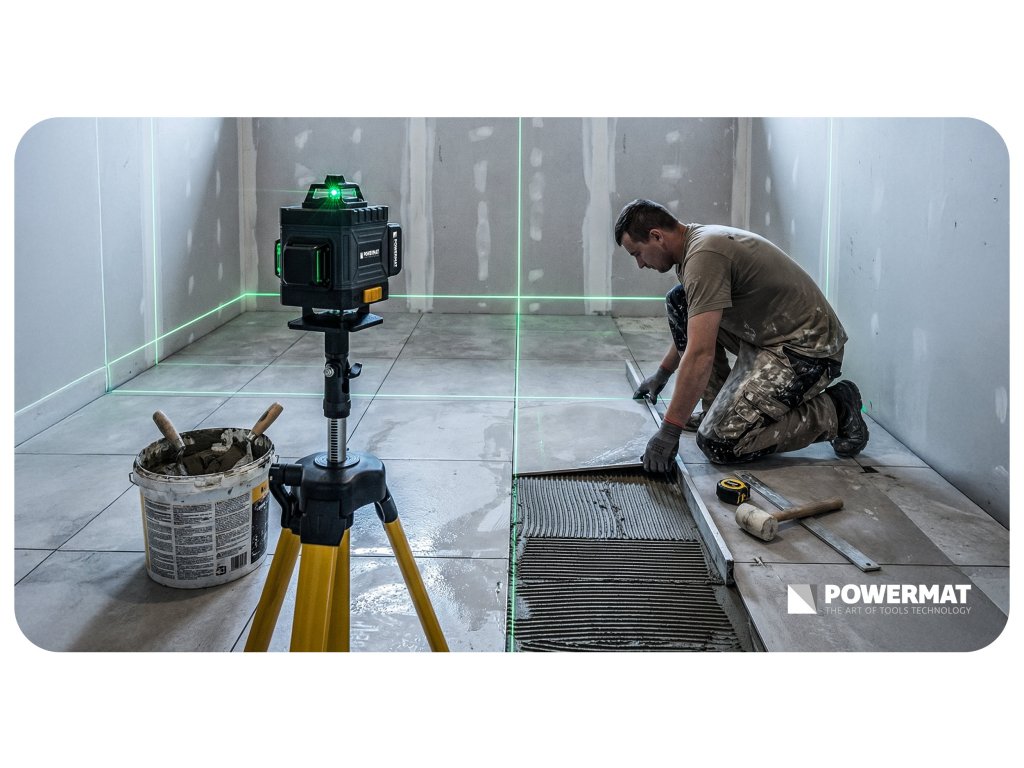 Profesionální 4D křížový laser POWERMAT PM-PLK-4DM1 promítá 16 linií v rozsahu 360° pro přesné nivelování a vytyčování svislic i vodorovných rovin. Zelený paprsek 532 nm zajišťuje vysokou viditelnost, přesnost ±1 mm / 10 m a pracovní dosah až 40 m. Samonivelace a krytí IP54 umožňují spolehlivou práci v interiéru i exteriéru.