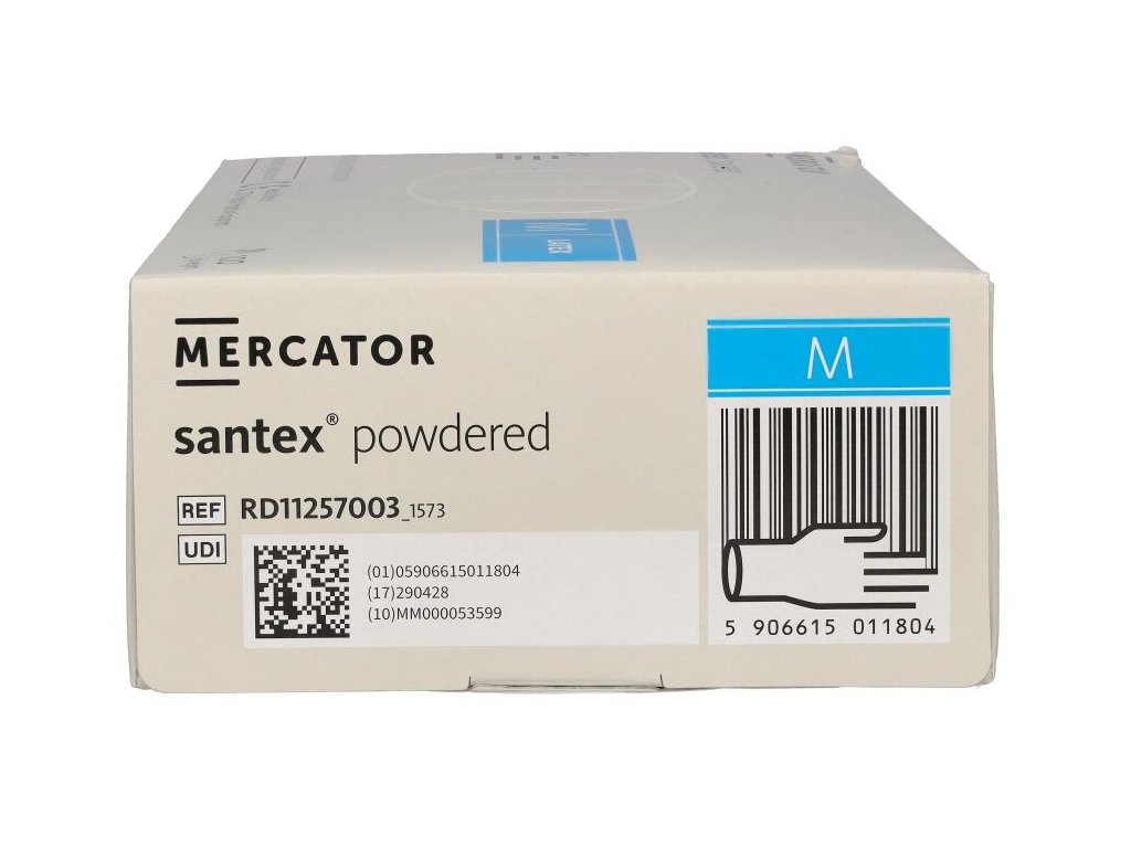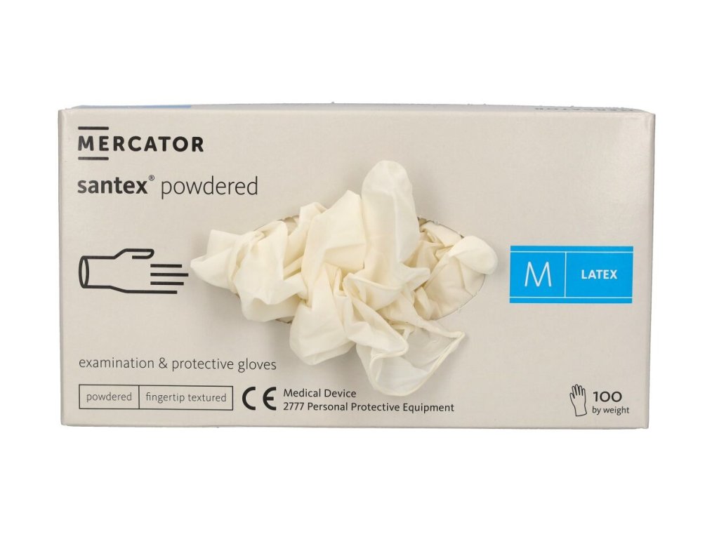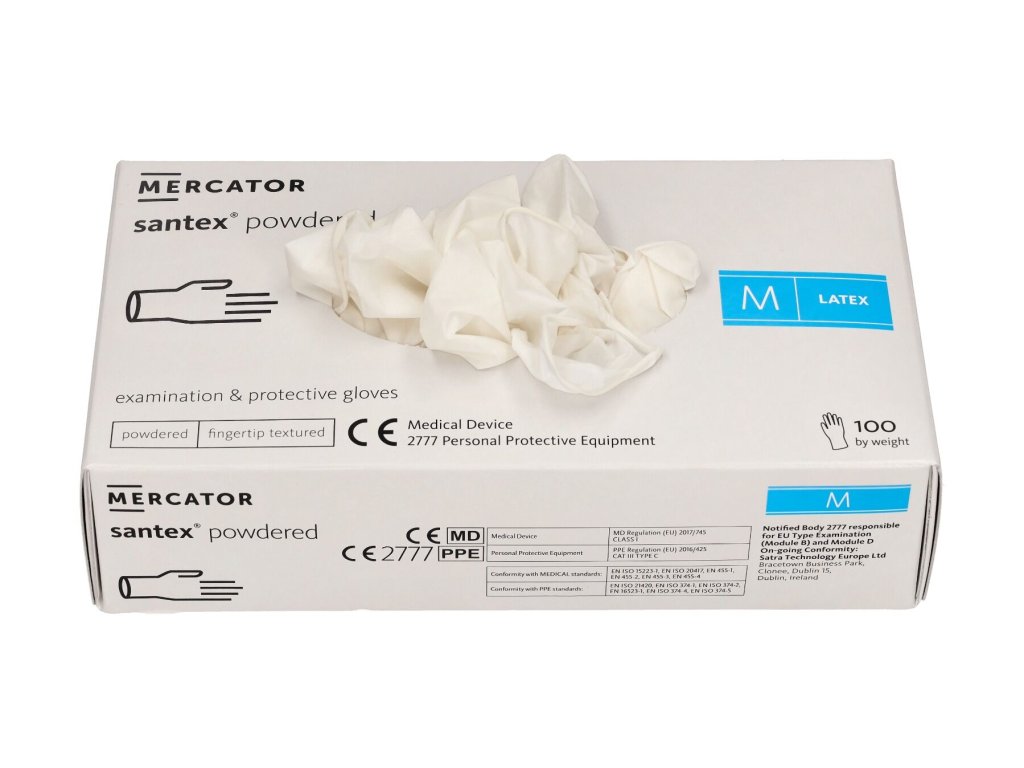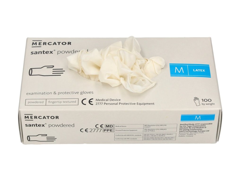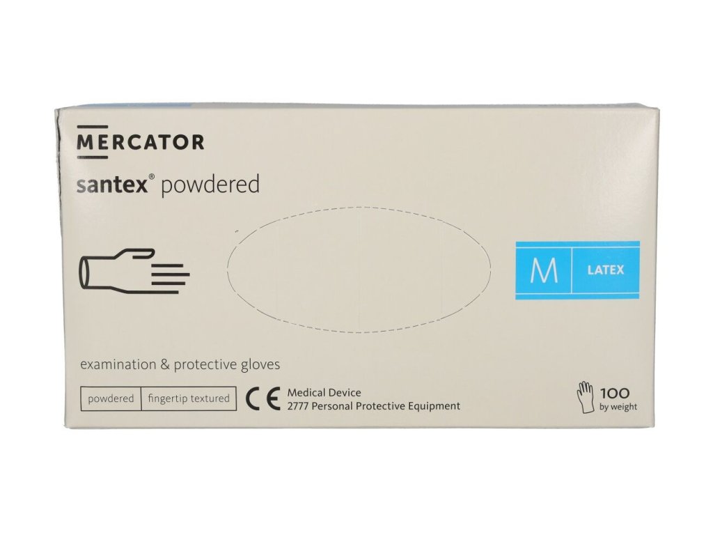 Latexové pracovní rukavice MERCATOR Santex Powdered vel.M, 100ks, Invento 920-RD11257003