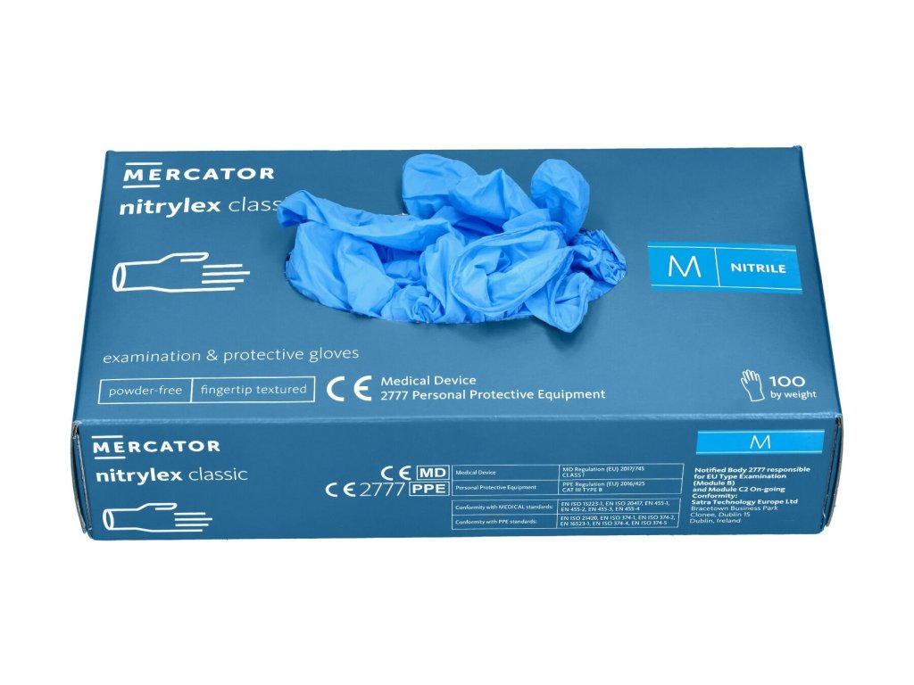 Nitrylové pracovní rukavice MERCATOR Nitrylex CLASSIC vel.M, 100ks, Invento 920-RD30019003