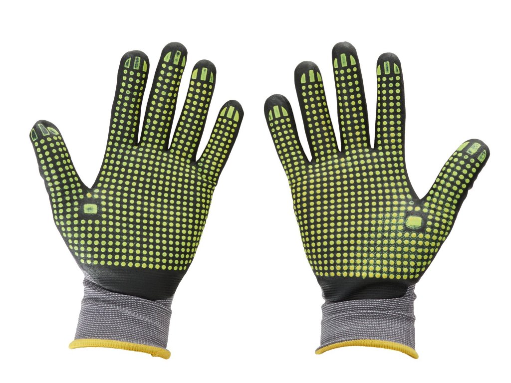 Díky tečkovanému latexovému vzoru je zajištěn silný a jistý úchop uchopovaných předmětů.